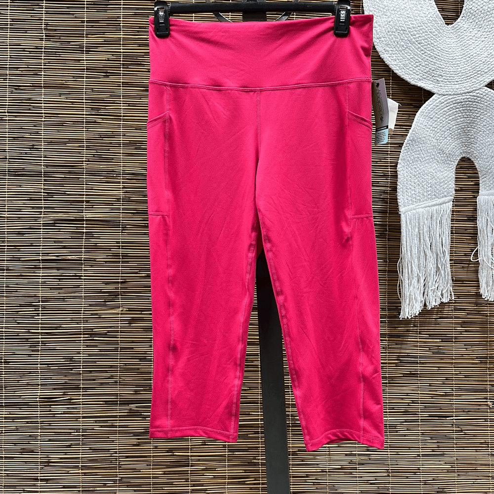 ID Ideology Women S Compression High Rise Side Pocket Cropped Leggings Pink Size Large 12
