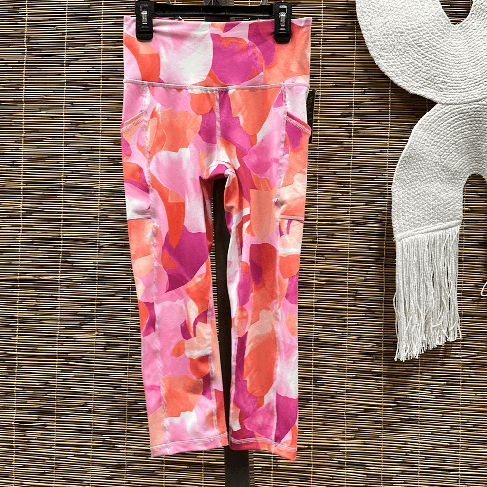 ID Ideology Women S Compression Petal Print Side Pocket Cropped Leggings Pink Size X-Small 19