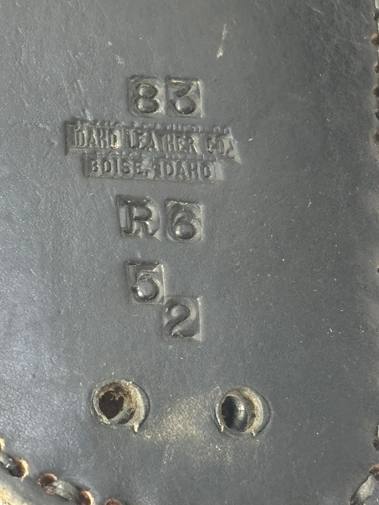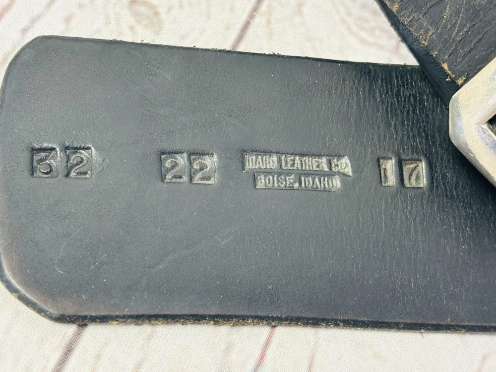 Step into the Old West with this vintage Idaho Leather Co. gun belt and holster, crafted from high-quality black leather with detailed tooling. The belt is personalized with the name “Roy” and features decorative star accents. • Brand: Idaho Leather Co. • Color: Black • Material: Leather • Belt Size: Approx. 32” (please verify measurements) • Holster: Single holster with woven accent stitching • Buckle: Silver-tone metal • Condition: Pre-owned with signs of wear, including scuffing and creasing (see photos for details). This classic Western accessory is perfect for collectors, reenactors, or display. Don’t miss out—add this vintage piece to your collection today!