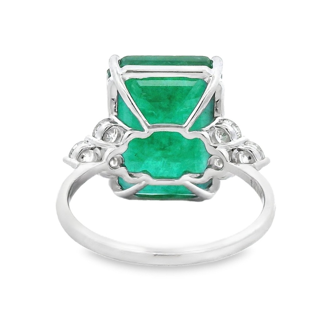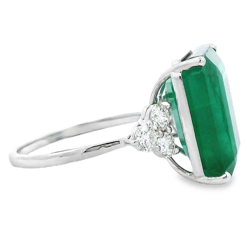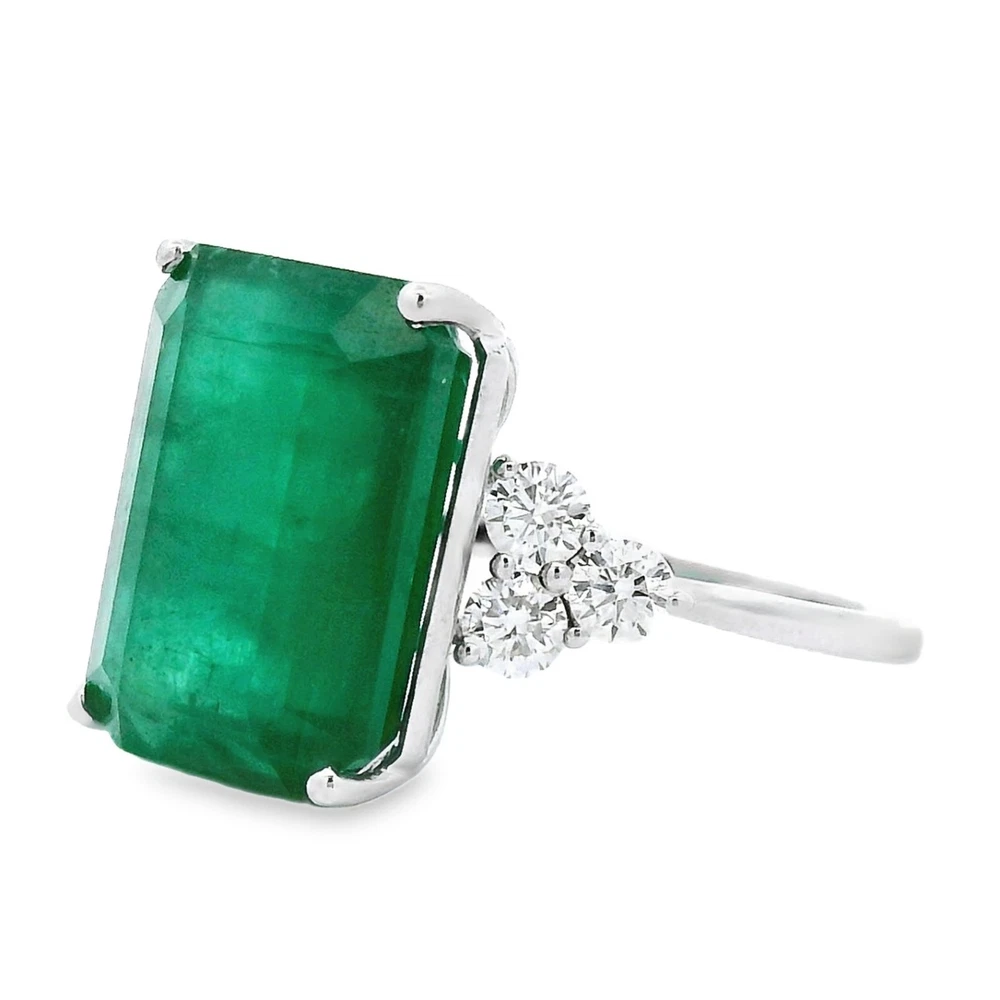 A Beautiful Emerald cut Emerald ring. 6.75 US / 14 IT / 54 EU **Ring size can be adjusted for free Comes With authenticity report from IGI (report number engraved on the inner side of ring) Centre Stone - Emerald, Centre Stone Weight - 9.94 Carat, Centre Stone Transparency - Transparent IGI Report Number- 62J4957325 Total Number of Diamonds - 06 , Diamonds Carat Weight - 0.61 carat Diamond Shape and Cut - Round Brilliant Cut, Diamond Colour - G-H Clarity - VS Set in 14K White Gold , 4.33 Grams gross weight, Ring Size - 6.75 US, 14 IT, 54 EU