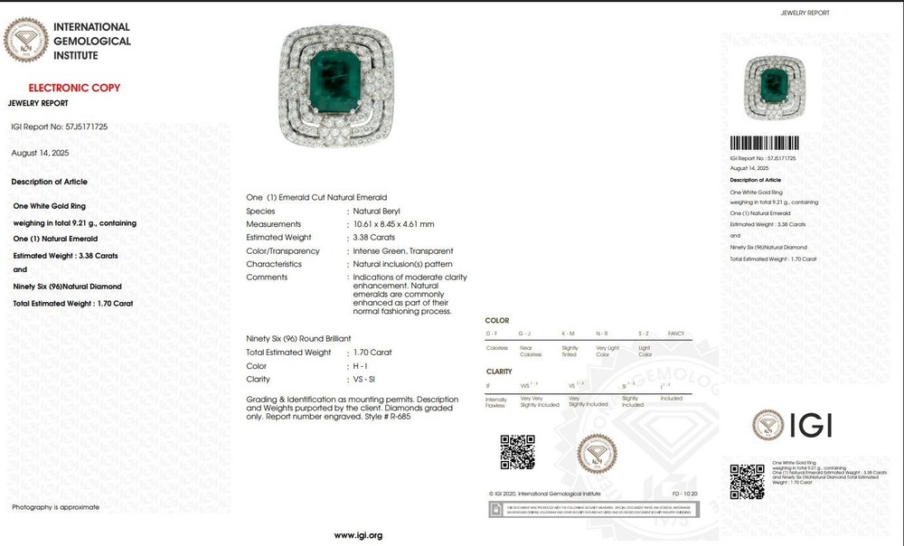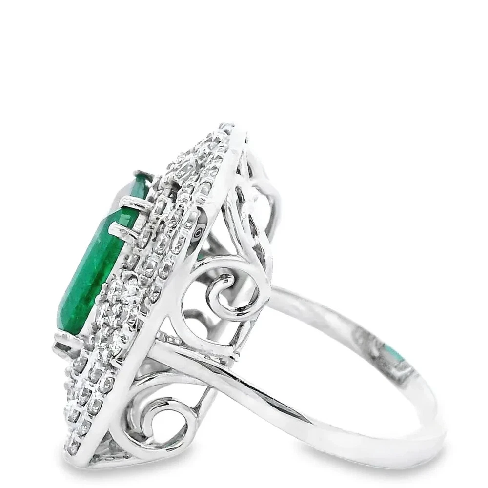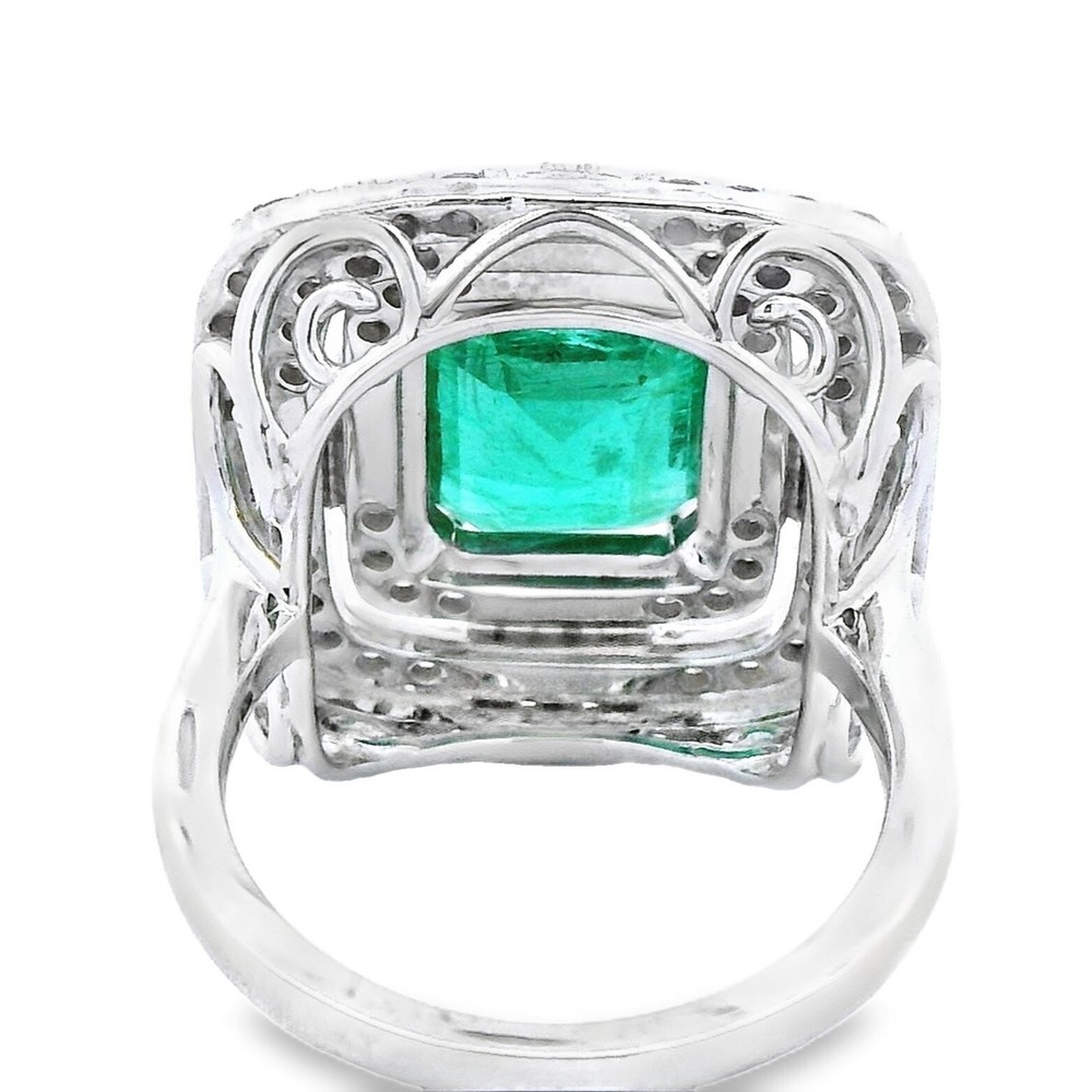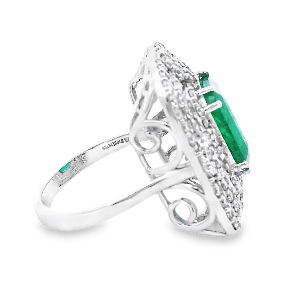 A Beautiful Emerald cut Emerald ring. 6.75 US / 14 IT / 54 EU **Ring size can be adjusted for free Comes With authenticity report from IGI (report number engraved on the inner side of ring) Total Carat - 5.08 Carat Centre Stone - Emerald, Centre Stone Weight - 3.38 Carat, Centre Stone Transparency - Transparent IGI Report Number- 57J5171725 Total Number of Diamonds - 96 , Diamonds Carat Weight - 1.70 carat Diamond Shape and Cut - Round Brilliant Cut, Diamond Color & Clarity - H/I VS/SI Diamonds Set in 14K White Gold , 9.21 Grams gross weight, Ring Size - 6.75 US, 14 IT, 54 EU