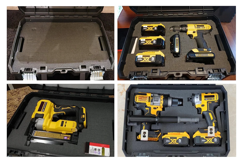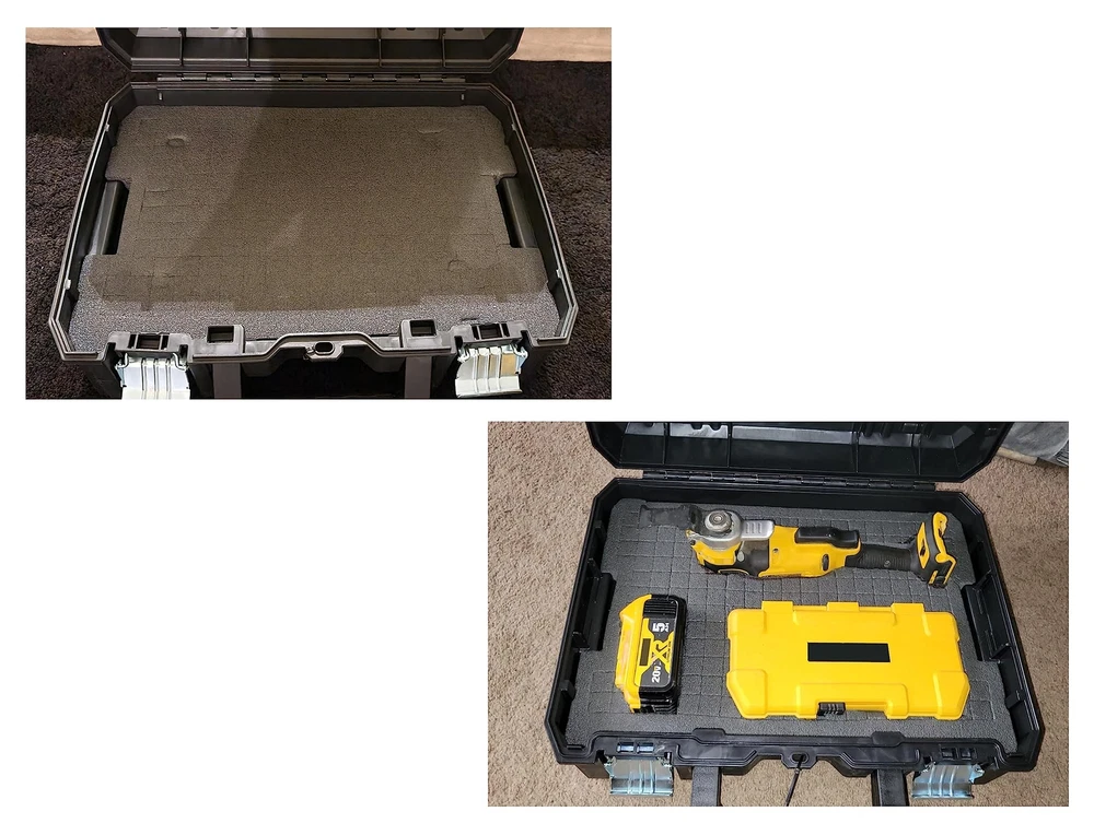 1.DWST88801 packout foam inserts for easy customization.for Dewalt tool box organizers DWST17808, DWST17807, DWST17805 packout Drawer foam tool box inserts. 2.Customisable Foam Insert Size:16.77*11.7*2.73 inch,and removable blocks allow for easy customization to a create custom layout for your tools, ensuring that each one has its own designated spot. 3.Designed to fit DWST88801 Tool Box storage Foam Insert for DeWalt DWST17808, DWST17807, DWST17805 4.DWST88801 Tool Organizer Foam Insert for DeWalt tstak packout foam inserts Abrasion Resistant、Serviceable. Securely Store and Protect Your Tools Three Step Process to Create a Custom Layout. 5.Step 1: trace your product Step. 2: cut the outline with a knife at desired depth Step .3: peel out the layers. 1.DWST88801 packout foam inserts for easy customization.for Dewalt tool box organizers DWST17808, DWST17807, DWST17805 packout Drawer foam tool box inserts. 2.Customisable Foam Insert Size:16.77*11.7*2.73 inch,and removable blocks allow for easy customization to a create custom layout for your tools, ensuring that each one has its own designated spot. 3.Designed to fit DWST88801 Tool Box storage Foam Insert for DeWalt DWST17808, DWST17807, DWST17805 4.DWST88801 Tool Organizer Foam Insert for DeWalt tstak packout foam inserts Abrasion Resistant、Serviceable. Securely Store and Protect Your Tools Three Step Process to Create a Custom Layout. 5.Step 1: trace your product Step. 2: cut the outline with a knife at desired depth Step .3: peel out the layers.