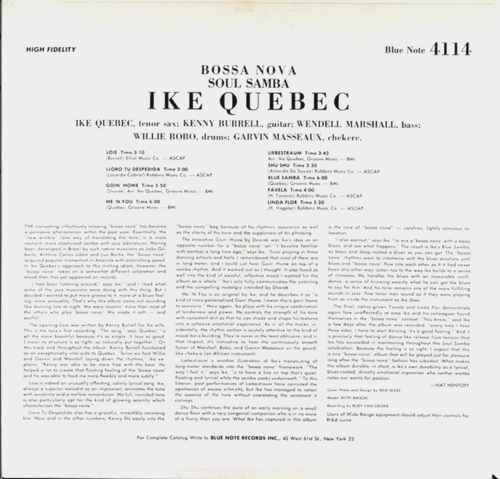 IKE QUEBEC "BOSSA NOVA SOUL SAMBA" BLUE NOTE BN-4114 Japan