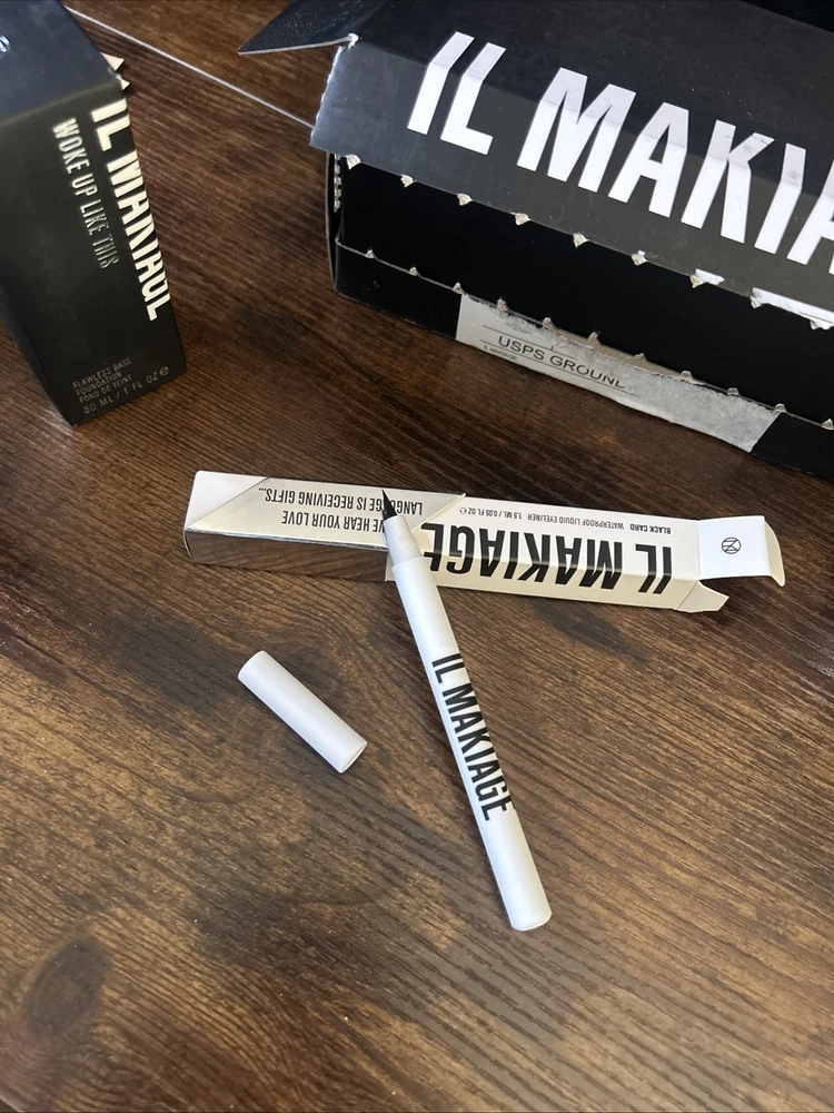 IL MAKIAGE - my daughter ordered a subscription box. She loved the make up but considering she does not wear that much makeup. It has stocked up. This was sent to me us April 1st. It is new. It has never even been tested. It was opened to take pics. I know makeup is something I am extremely picky about. Smoke free, pet free, ocd kept home. Includes: 1 FLAWLESS BASE FOUNDATION - WOKE UP LIKE THIS SHADE 20. ( full size) 30 ML 1 F**k I’m FLAWLESS ( full size) 7 ML 1 NO FILTER PRIMER - ( full size) 25 ML 1 BLACK EYELINER - (full size) ANY QUESTIONS PLEASE ASK.