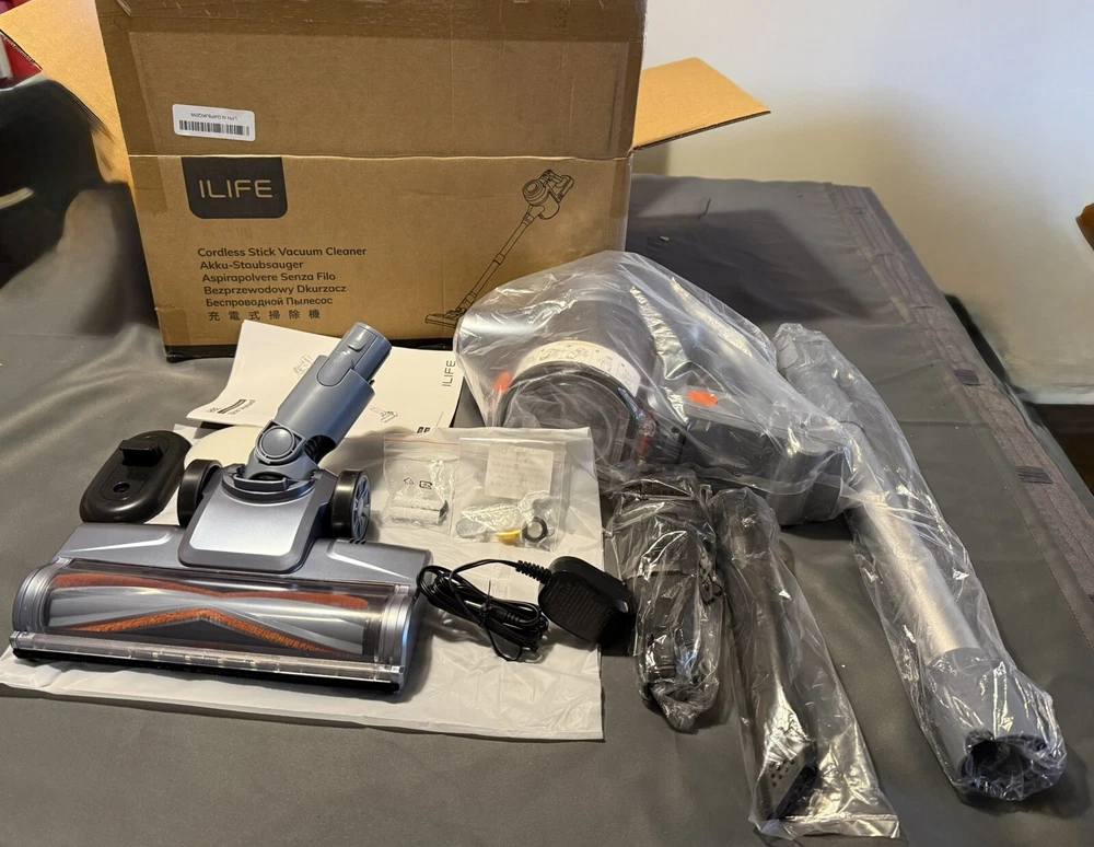 ILIFE Cordless Vacuum Cleaner, Self-Standing Lightweight Stick Vacuum with 35 Mins Runtime, Detachable Battery, Rechargeable Vacuum Cleaner for Home, Hard Floor, Carpet, Pet Hair, H80, Gray Self-Standing Cordless Vacuum] ILIFE H80 stick vacuum can stand on its own wherever you need to take a break during the cleaning. Mounts against the wall after each use to save storage space [Detachable Battery] The H80 cordless stick vacuum cleaner can clean for up to 35 minutes in normal mode and 15 minutes in max mode, it is powered by a 6 x 2200 mAh detachable lithium battery [Consistent Suction] The H80 cordless vacuum's cyclone mechanism shortens the air passage by 50% thanks to a built-in secondary mini dirt cup. By minimizing airflow wear, its creative design maintains the optimal suction power during your cleaning session [Lightweight and Versatile Surfaces] Comes with an upgraded 2-in-1 suction brush and crevice tool, this vacuum cleaner can easily converts into a lightweight handheld vacuum, tackles multiple surfaces like hard floors, carpets, stairs, curtains, upholsterer, interior car [One-Button Emptying] Effortlessly dispose collected dirt with the one-button emptying dirt cup design. Simply press the button to open the cup, making it easy to dump debris without creating a mess [LED Display Panel] Intuitive LED panel indicates battery level and error alerts, allow to switch between max mode and normal mode at the touch of the screen [5-Stage Cyclone Filtration and Washable HEPA] 99.99% of the fine particles can be separated and captured by the 5-stage cyclone filtering technology used in the H80 cordless vacuum. For maintenance, feel free to remove the dirt cup, sponge filter component and HEPA filter to wash under the water [Flexible Floor Brush with LED Lights] Easily cleans behind couches, mattresses, and around legs with a floor brush; 270° left and right swivel and 90° up and down motion. In the dark, 4 integrated, bright LED lights help illuminate dirt Note: To ensure transparency, all photos in this listing are of the actual item and its contents. Please review the images carefully, as they represent exactly what is included in your purchase. Feel free to send a message if you have any questions or need clarification.