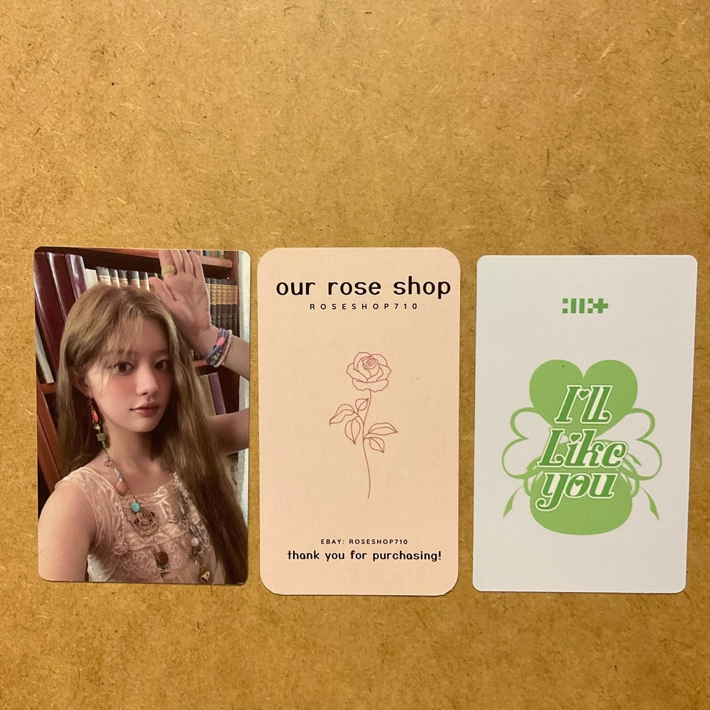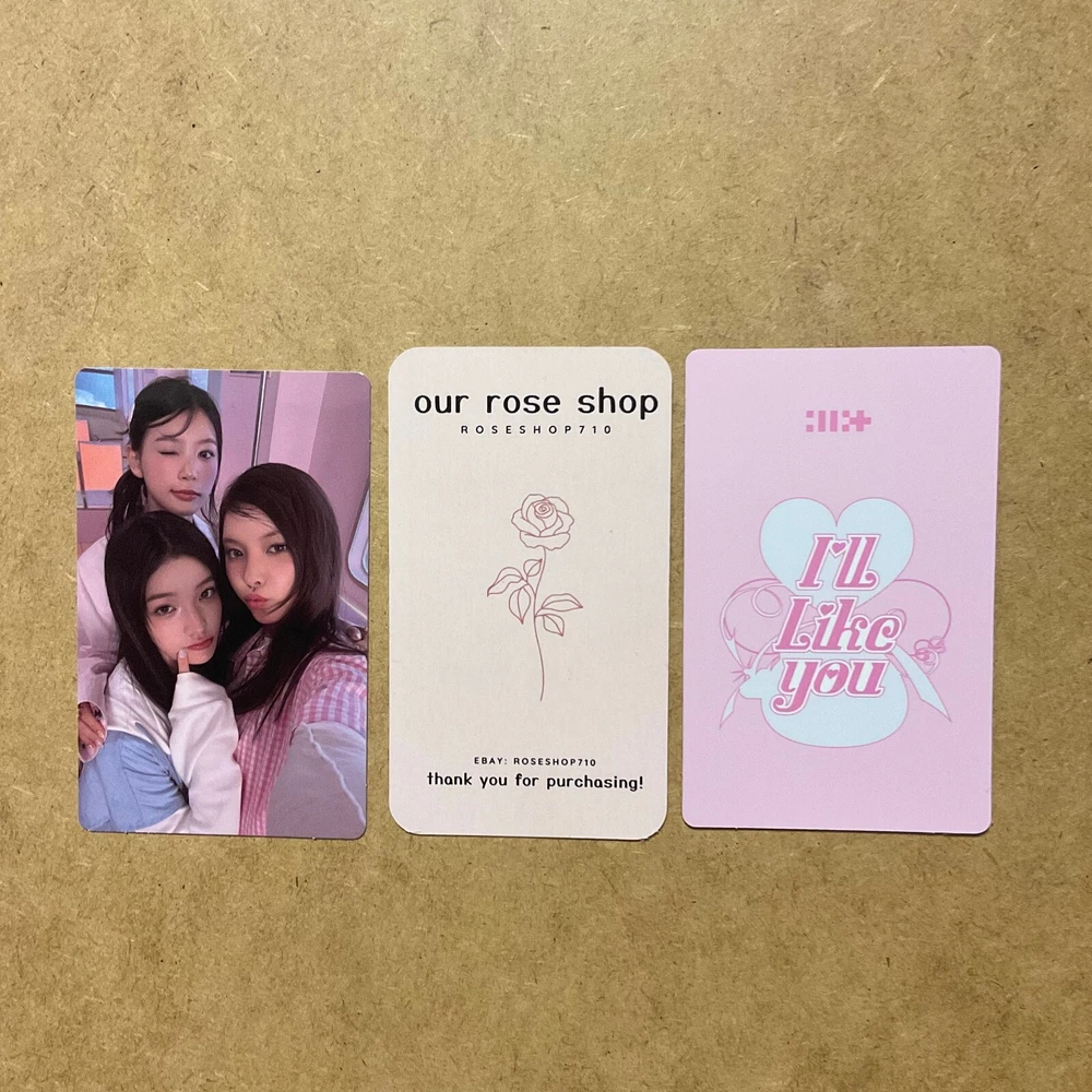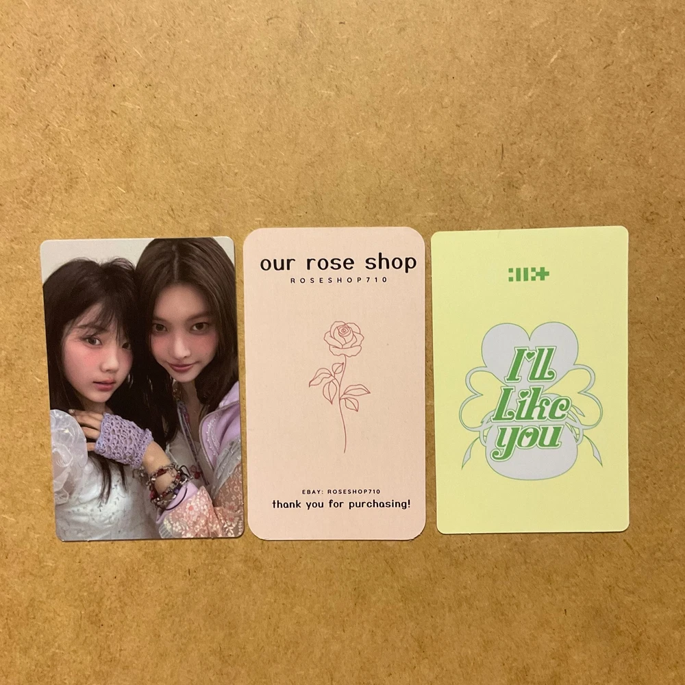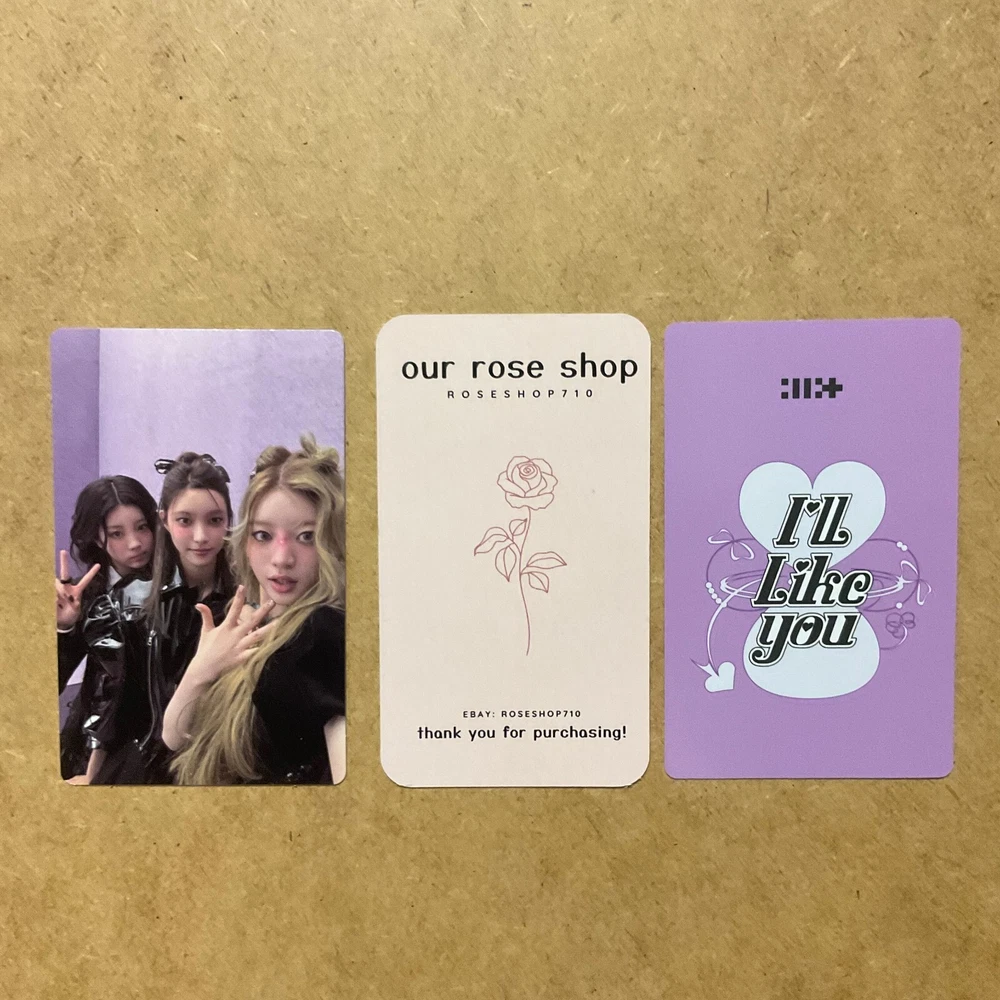 No restocks planned. (Please check profile for information on restocks.) All photocards are authentic, original goods. No returns on photocards. For US buyers : USPS tracked shipping from the US. If you add $70+ of photocards to your cart, you will automatically get free shipping. For international buyers : Please DM before purchase, we can check the shipping fees to ensure correct charge. We are not responsible for any possible customs fees incurred. Description Artist: ILLIT Type: Photocard Will be shipped safely in a shipping shield or top-loader. Item condition: There is no noticeable damage , however there may be small scratches or other album damages. Fine scratches, damage, discoloration, slight warping, etc may be possible during packaging and delivery, this is not a reason for exchange. Shipping We will ship in 1-3 business days from receiving payment. Items are on hand and will ship from the USA. All orders will be sent with a tracking number.