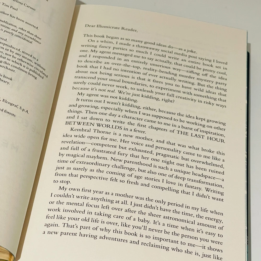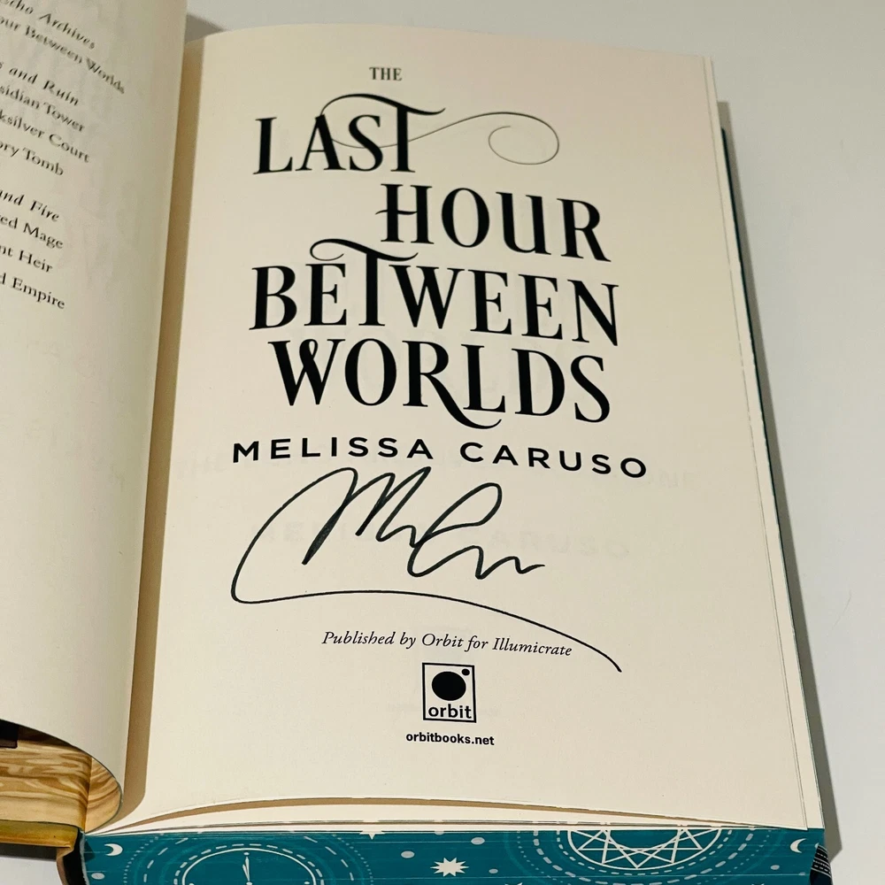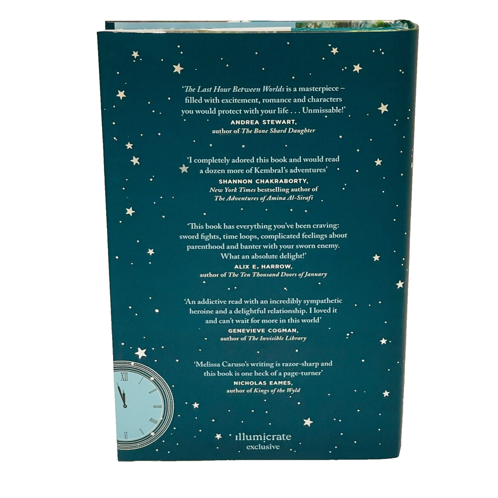 The Last Hour Between Worlds - ILLUMICRATE November Exclusive Edition A whip-smart adventure fantasy packed with rival guilds, reality-bending magic, and sapphic pining, The Last Hour Between Worlds is the brilliant launch of a new series from David Gemmell Award-nominated author, Melissa Caruso. Kembral Thorne is spending a few hours away from her newborn, and she's determined to enjoy herself at this party no matter what. But when the guests start dropping dead, Kem has no choice but to get to work. She is a Hound, after all, and she can't help picking up the scent of trouble. She’s not the only one. Her professional and personal nemesis, notorious burglar Rika Nonesuch, is on the prowl. They quickly identify what’s causing the a mysterious grandfather clock that sends them down an Echo every time it chimes. In each strange new layer of reality, time resets and a sinister figure appears to perform a blood-soaked ritual. As Kem and Rika fall into increasingly macabre versions of their city, they’ll need to rely on their wits—and each other—to unravel the secret of the clock and save their home. For more from Melissa Caruso, check Swords and Fire The Tethered Mage The Defiant Heir The Unbound Empire Rooks and Ruin The Obsidian Tower The Quicksilver Court The Ivory Tomb Format: Hardcover Published: 2024 Edition: 1st Edition - Exclusive Edition November Other: Signed by Author ; Foil embossing on Cover ; Digitally printed edges. Pages: 388 ISBN: 9780356524115 Hardcover Brand New