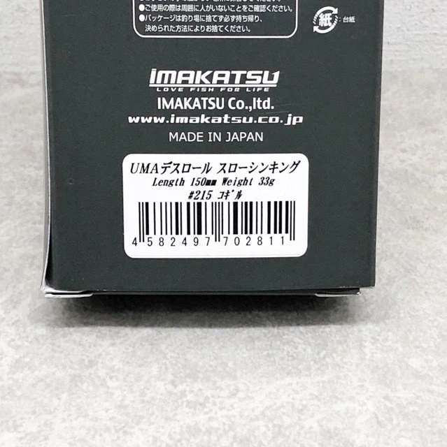 IMAKATSU UMA Death Roll Slow Sinking / #215 Cogill Description IMAKATSU UMA Death Roll Slow Sinking / #215 Cogill lure #215 Cogill Product name: IMAKATSU lure #215 Cogill Weight: 33g Length: 150mm Lure Type: Hard Lure Color: #215 Cogil Brown Accessories: None *Everything is shown in the photo. Model: UMA Death Roll Shipping We will ship it within 10 business days. >We always send the item with a tracking number. So please place an order without any concern on delivery. You can always track the delivery status. >Shipping is only available to the address registered in eBay. If you want us to send another address, please change your address on eBay and then place an order. >Shipping is available from Monday to Friday. Weekends are not available because freight companies are closed. >Delivery may be delayed due to the weather, customs clearance, and conditions of the destination country. >The delivery method may change depending on the country. International Buyers-Please Note: - Import duties, taxes and charges are not included in the item price or shipping charges. These charges are the buyer's responsibility. - Please check with your country's customs office to determine what these additional costs will be prior to bidding/buying. - These charges are normally collected by the delivering freight (shipping) company or when you pick the item up. - Please do not confuse them for additional shipping charges. - We do not mark merchandise values below value or mark items as "gifts". - US and international government regulations prohibit such behavior.