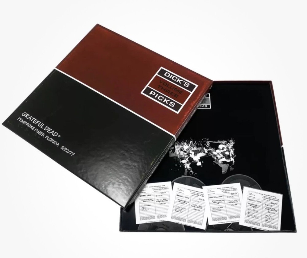 BRAND NEW ✅ EXCELLENT CONDITION ✅ SPEEDY SHIPPING ✅ HAPPY TO SHIP SECURELY OVERSEAS ✅ Very low number 63/2000 GRATEFUL DEAD: Dick’s Picks Vol. 3—Pembroke Pines, Florida 5/22/77 (Limited, Hand-Numbered, 180-Gram 4-LP Set) Grateful Dead archivist Dick Latvala considered this show to be the finest outing on the entire Spring 1977 tour, and, as any Dead Head knows, that is high praise indeed! At the time this was released on CD, the Dead weren’t sure a market existed (ha!) for three and four-CD packages, so this four-LP set leaves off eight songs from the show, but consider what songs are here: a phenomenal “Help on the Way”/”Slipknot!”/”Franklin’s Tower” comes after one of the definitive renditions of “Sugaree” and a terrific “The Music Never Stopped,” with the late, great Phil Lesh’s slithering bass leading the way in recording engineer’s Betty Cantor-Jackson’s mix. But sides E, F & G offer one of those sublime (and, in this case, never to be repeated) sequences of songs that only the Dead could pull off in concert; after the rarely-performed “Sunrise,” a medley of “Estimated Prophet”/”Eyes of the World”/”Wharf Rat”/”Terrapin Station” (a truncated version two months before its official release)/”Morning Dew” brings the show home, as Jerry Garcia’s soloing on “Morning Dew” reaches heights seldom attained even by him. This was a knockout release on its first very limited vinyl run (check out those resale prices), and we’ve improved on it with a fresh mastering job by Jeffrey Norman (in his own words, “the sound is better than the original heard on the Brookvale release”), and lacquer cutting by Clint Holley and Dave Polster at Well Made Music. Pressed on 180-gram black vinyl at the plant we’ve been using to great acclaim for all of our Grateful Dead releases, Gotta Groove Records, and limited to 2000 hand-numbered copies! Songs: LP ONE SIDE A Funiculi Funicula The Music Never Stopped Sugaree SIDE B Lazy Lightning Supplication Dancin’ in the Streets LP TWO SIDE C Help On The Way Slipknot! SIDE D Franklin’s Tower LP THREE SIDE E Samson and Delilah Sunrise Estimated Prophet SIDE F Eyes of the World Wharf Rat LP FOUR SIDE G Terrapin Station (Walk Me Out In The) Morning Dew