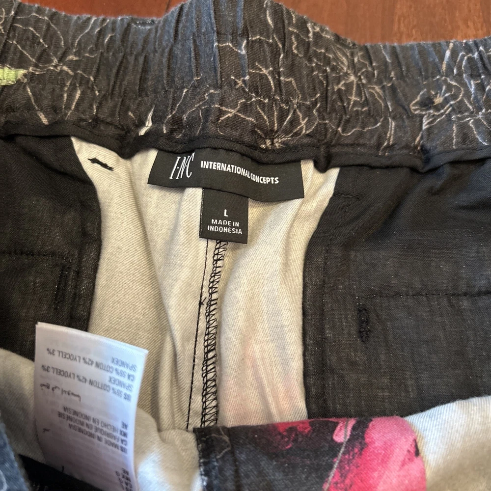 INC International Concepts Womens Pants L Black Pink Floral Tropical 80s Style Elevate your wardrobe with these chic INC International Concepts dress pants, designed to flatter with a slimming silhouette. The black hue is accented with a playful pink floral pattern, giving these pants a tropical vibe that's perfect for a variety of occasions. Crafted from a blend of lyocell and cotton, they offer both comfort and durability. With a size L regular fit, these pants cater to the modern woman who values both style and ease. The slim design pairs seamlessly with your favorite tops and shoes, making them a versatile addition to your collection. Whether you're dressing up for the office or a night out, these pants bring a touch of the 80s flair to your ensemble.