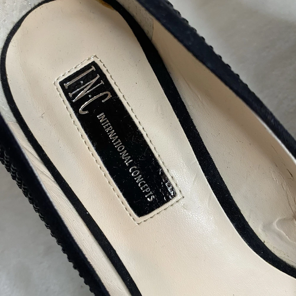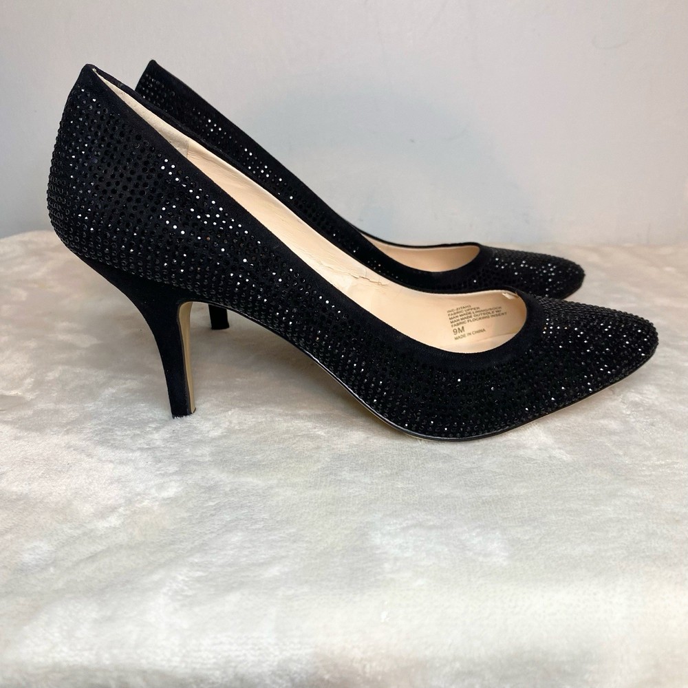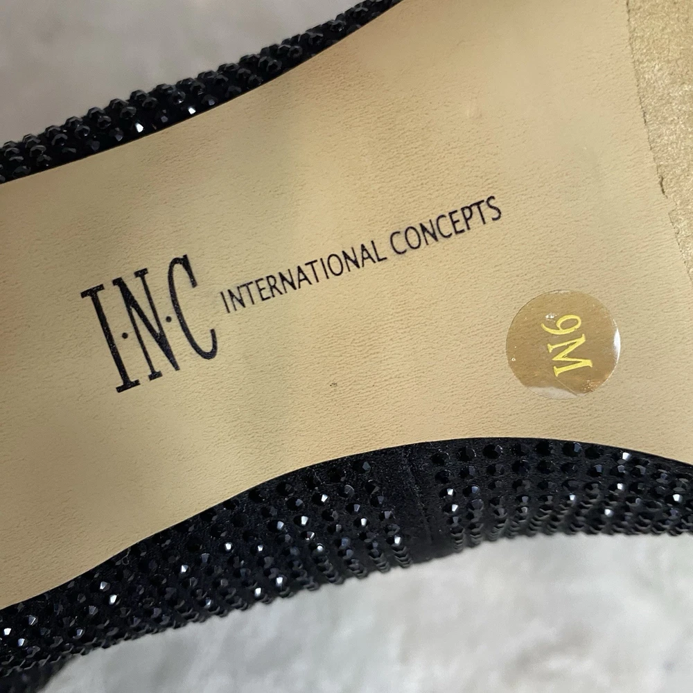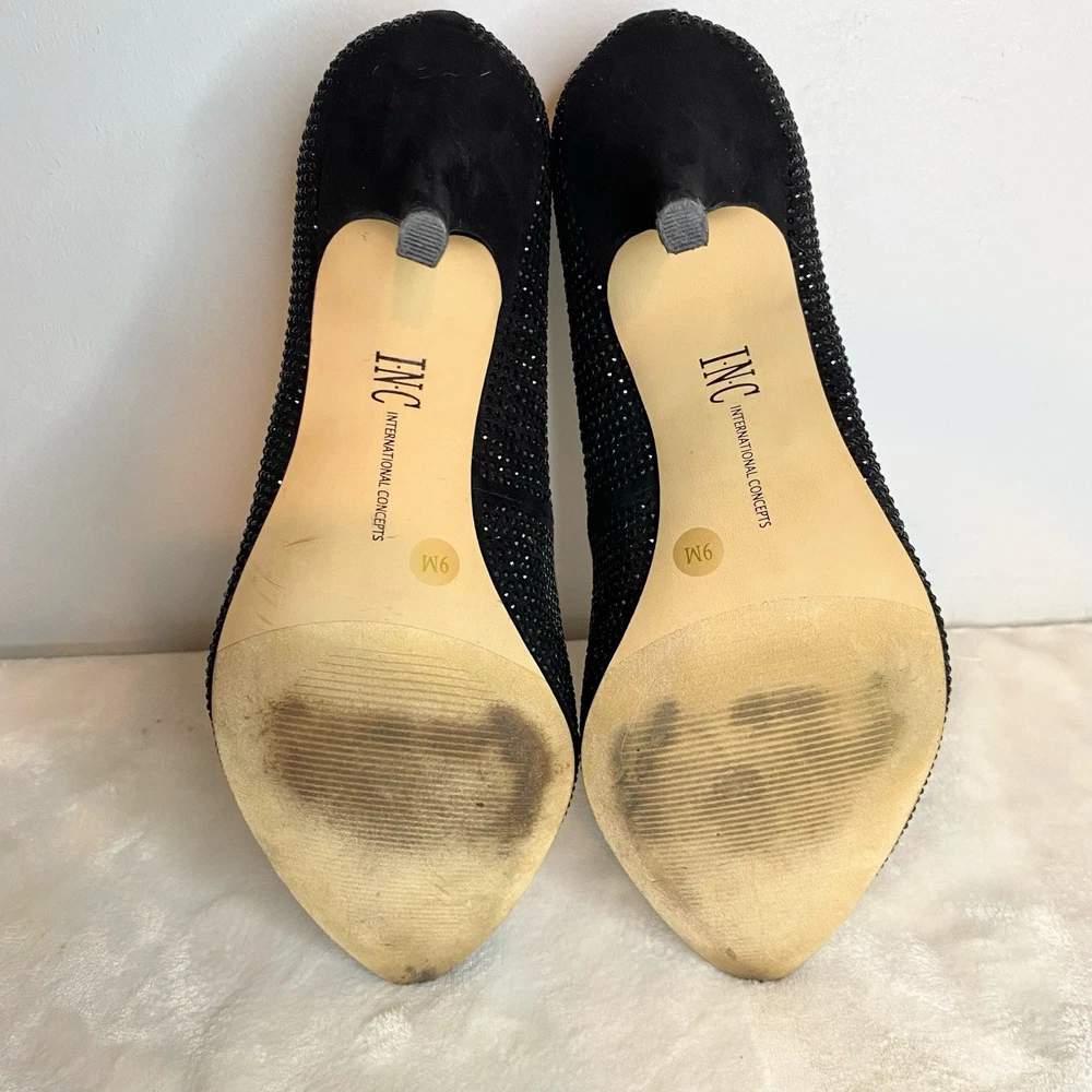 Classic elegance. I.N.C. International Concepts®'s Zitah pumps put a nice polish on anything, from worksuits to dresses. Features 3" covered heel Pointed-toe slip-on pumps Memory foam sock for added comfort Featured on our Spring It List Available in Medium(M) Created for Macy's Manmade, suede, fabric or leather uppers; manmade sole. Worn once for a New Years Party. Very, very sparkly under the dim lights. In fantastic condition only a bit of wear on soles as normal. Clean interior, no damage to any of the crystals. Size 9 M width No box Smoke free home Fast shipping Was $90