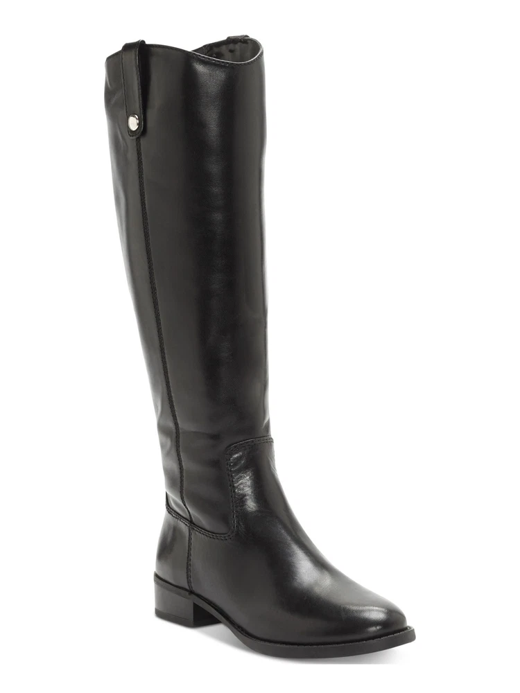 INC Womens Black Fawne Round Toe Stacked Heel Zip-Up Leather Riding Boot 6
