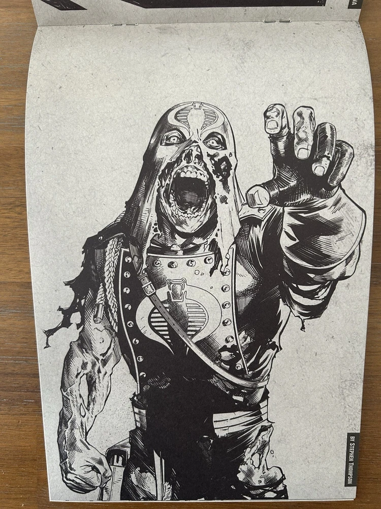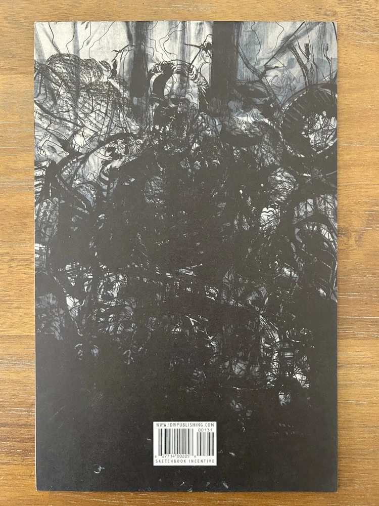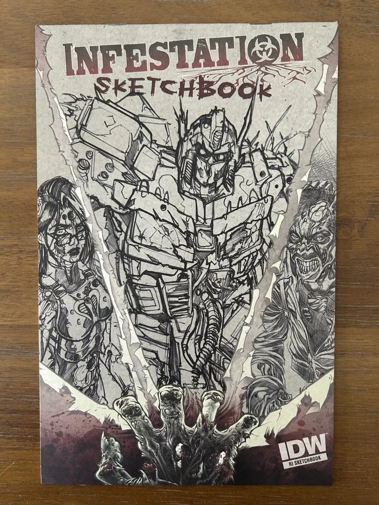 It is a comic book titled "INFESTATION: SKETCHBOOK (IDW 2011)" featuring artwork from various artists. The comic is part of the Infestation series by IDW Publishing, combining Transformers and GI Joe characters in a horror and sci-fi setting. The comic is in black and white, with a set of action-packed and adventurous stories featuring characters like Cobra Commander, Optimus Prime, and Megatron.