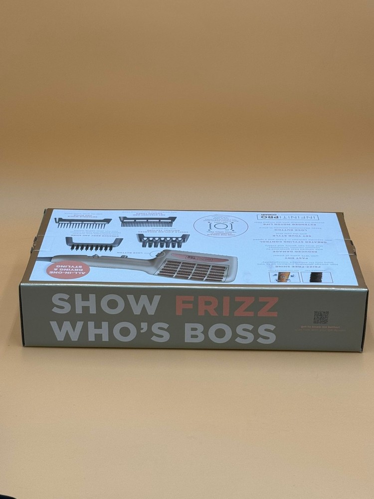 No Frizz, No Fuss: Break free from frizz! Boost shine and manageability with the Frizz Free 4-in-1 Hair Dryer featuring advanced ionic technology, which generates up to 50% more ions for enhanced manageability and frizz-free shine. Show Frizz Who's Boss: The INFINITIPRO BY CONAIR Frizz Free Styling Blow Dryer has 1875 Watts for powerful, quick drying, and titanium ceramic technology that creates even heat to protect hair from damage. Styling Control: 3 Heat / 2 Speed settings to customize your own unique style + Cold Shot button to lock style in place! Includes 4 attachments for natural texture, enhanced body & shine, detangling, and dual-row straightening comb for sleek smooth styles. Leader in Hair Dryers: From traditional bonnets to hi tech dryers equipped with cutting edge technology, Conair has a great selection of hair dryers for every hair type and every hair style. Conair Hair Care: Since 1959, we have made innovative small appliances, hair styling tools, and more; Our hair care line includes high quality hair dryers, brushes, styling tools, and hair accessories.