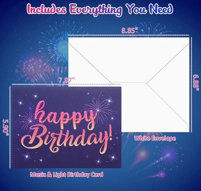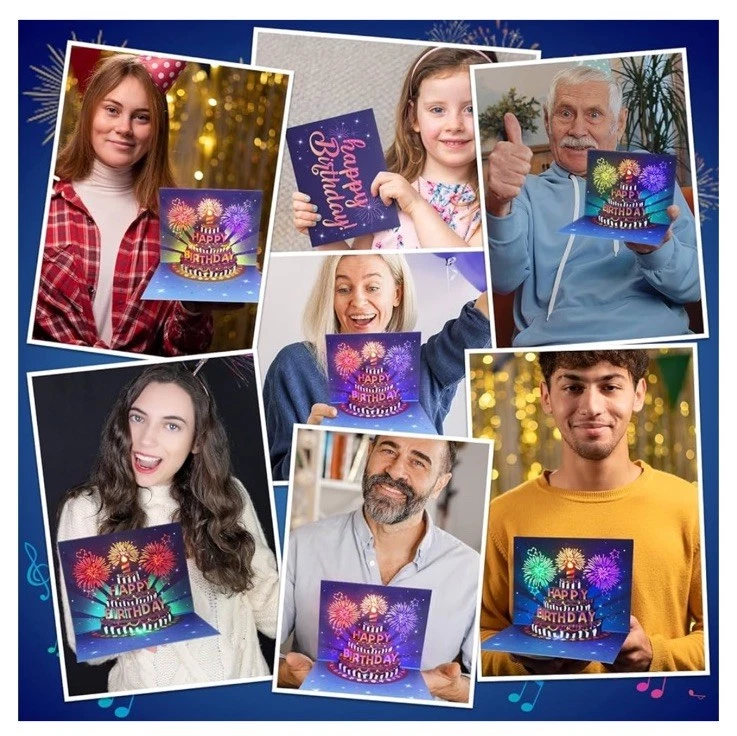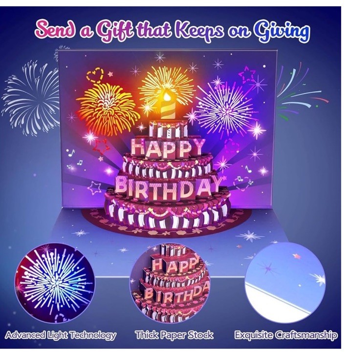 Birthday gifts for women - made with high quality cardstock, popular design based on 10000 questionnaires, 245 times visual effects optimization, 300 times electronic component tested. Vibrant fireworks sparkle and shine - festive and delicious cake pop up, automaticly play 'happy birthday', 3 fireworks change color and sync with loud music, don't settle for a boring birthday card when you can send one that truly sparkles and shines! Musical realistic firework effects birthday cards - say goodbye to the boring old school cards that do nothing and play no music, illustrate to your loved ones how much you care about their special birthday by giving them INPHER 3d birthday popup cards! Plenty of space inside for a heartfelt message - perfect combintion of light and music and handwritten message, it comes with a blank evolope that you can deliver your wishes to loved ones, size 8 x 6 inches. Durable battery and intricate circuit - withstand 900 times light and music power consumption, the circuit has undergone rigorous testing to guarantee dependable performance.