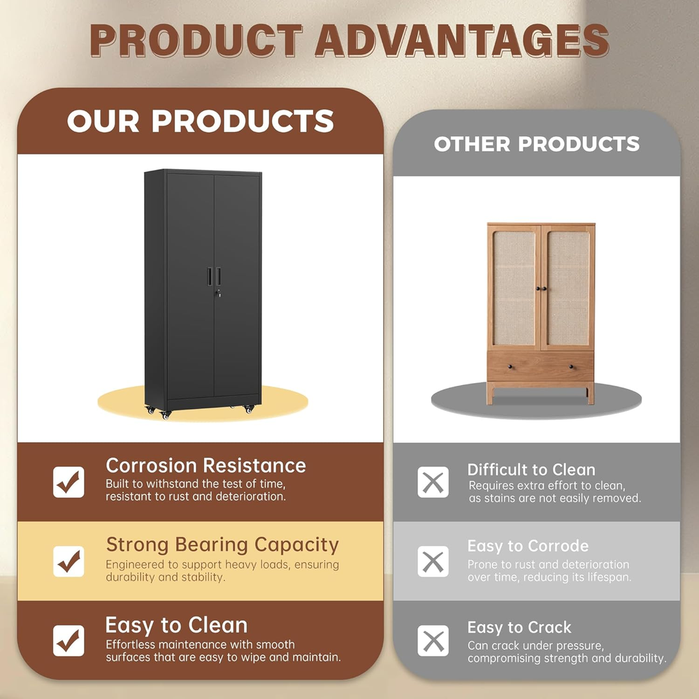 INTERGREAT Metal Storage Cabinet with Wheels, 73" H Rolling Metal Cabinets with