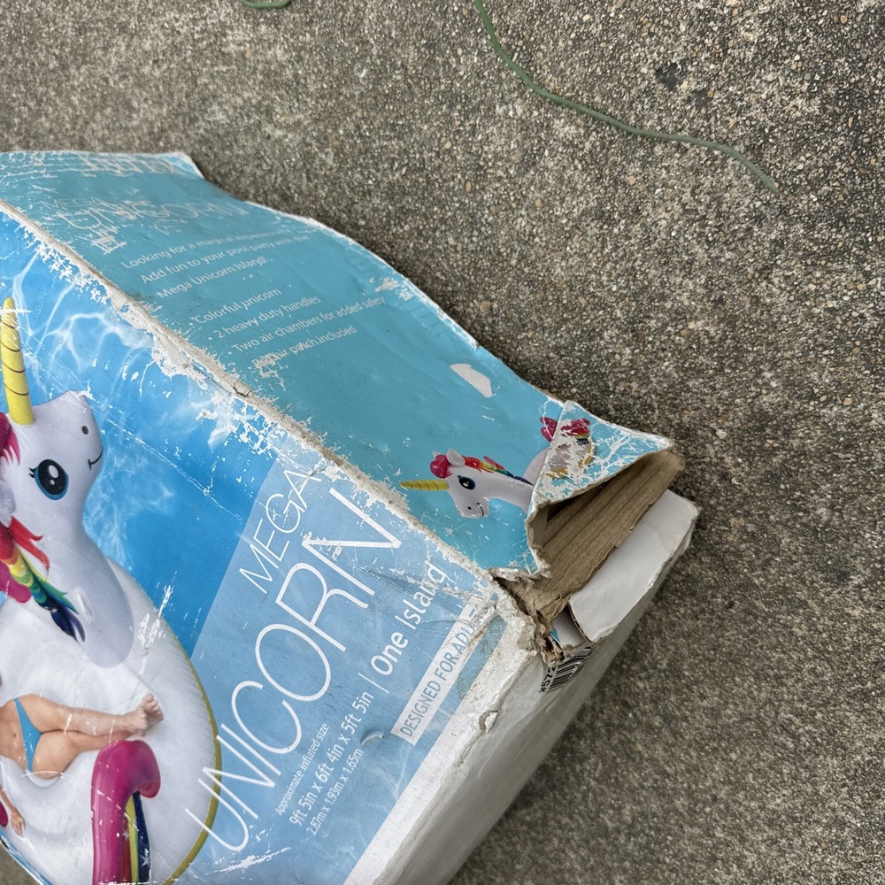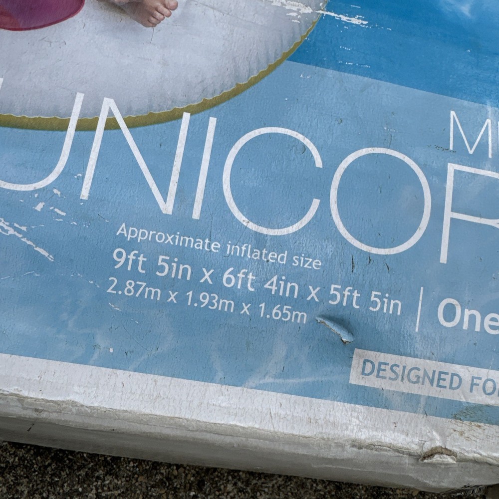 INTEX Mega Unicorn Island Pool Lake Inflatable Large 9ftx6ftx5ft BEAT UP BOX NEW