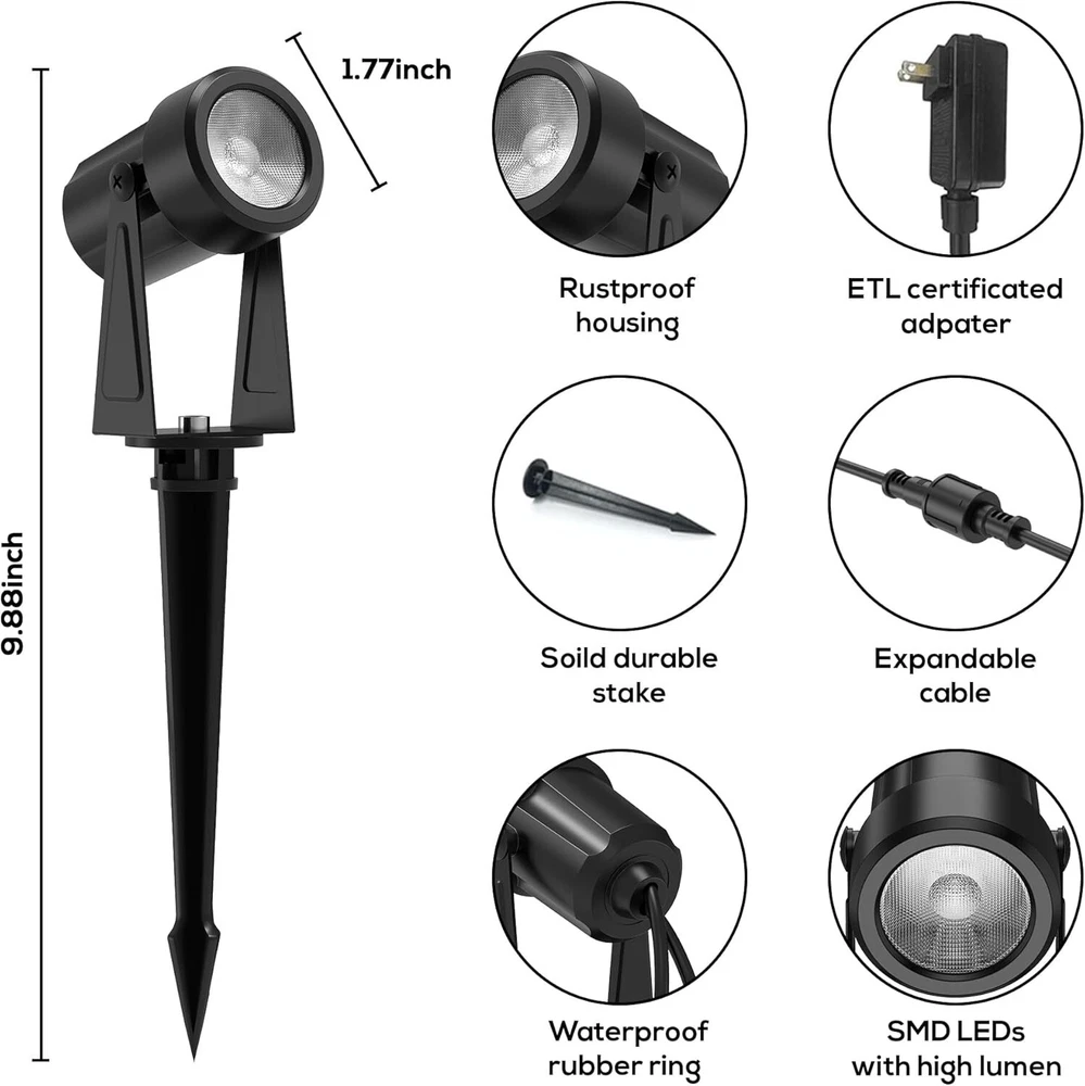 IP65 Waterproof RGBW LED Outdoor Landscape Lights with Remote Control - 6 Pack ‹ › ‹ › ‹ › ‹ › ‹ › ‹ › ‹ › ‹ › IP65 Waterproof RGBW LED Outdoor Landscape Lights - 6 Pack Illuminate Your Outdoors with Elegance Transform your outdoor spaces into a vibrant oasis with our IP65 Waterproof RGBW LED Landscape Lights. Perfectly designed for versatility and durability, these lights are not just illuminations; they are a statement of style and sophistication. Features & Benefits: Superior LED Technology: Equipped with top-quality LED chips and advanced lenses that emit higher brightness while ensuring energy efficiency and an extended lifespan compared to standard RGB spotlights. Versatile Color and Mode Options: Discover the magic of custom lighting with seven enchanting colors and daylight options. Choose from three stunning lighting modes with the ease of a remote control—perfect for creating your desired outdoor ambiance. Effortless Installation: Enjoy a hassle-free setup with our plug-and-play design. Select between ground stakes or wall mounts, effortlessly adjusting the light head to illuminate your gardens, walls, flower beds, and flags to perfection. IP65 Waterproof Rating: Withstanding rain, snow, and harsher climates, our lights are designed for all-weather performance. (Ensure to keep the adapter in a dry environment for optimal functionality.) Efficient Low Voltage Lighting: Experience bright and cost-effective lighting without compromising safety, thanks to the low voltage design that protects against electrical hazards. Why Choose Our RGBW LED Landscape Lights? Elevate your outdoor living experience with our elegant RGBW LED Outdoor Landscape Lights. Not only do they offer functionality and efficiency, but they also provide a palette of colors to paint your garden with stunning visuals, making any gathering feel truly special. Don't miss the opportunity to refresh your outdoor space—order your 6 Pack of IP65 Waterproof RGBW LED Outdoor Landscape Lights today and let the transformation begin! Shipping Free & Fast Shipping - We offer free shipping to most of the USA with a normal delivery time of 3-7 days. However, due to the current situation, additional delivery time (up to 3 weeks) may be required for some items. Alternative Carriers - We may use alternative carriers (e.g. USPS, FedEx, UPS, etc.) to ensure your package arrives safely and on time. Due to the use of multiple carriers, we are unable to provide a tracking number automatically. Handling Time - Orders are processed and shipped within 1-2 business days of receiving cleared payment. Shipping Restrictions - Shipping to Alaska, Hawaii, Puerto Rico, Guam, and other US territories may incur shipping charges or delivery restrictions. Please contact us before ordering, or your order can be refunded/cancelled. State Restrictions - There may be restrictions based on your state of purchase. For example, certain items may not be shipped to California due to state regulations. Contact for Tracking Updates - If you require tracking updates or have any concerns about the delivery of your order, please feel free to contact us, and we will be happy to assist you. Return 30-Day Hassle-Free Returns - We want you to be completely satisfied with your purchase. If you are not, you can return the item within 30 days of receiving it for a full refund or exchange. Easy Return Process - To start a return, simply contact us and we will provide you with a prepaid return shipping label and detailed instructions. Restocking Fee - There are no restocking fees for returns. However, the buyer is responsible for return shipping costs if the return is not due to a seller's error. Refund Processing Time - Refunds will be processed within 5 business days of receiving the returned item in its original condition. Payment We accept all major credit cards, PayPal, and Apple Pay for your convenience. Your payment information is secure and encrypted to ensure a safe and seamless transaction. Please complete your payment within 3 days of purchase to avoid any delays in shipping. Feedback Your feedback is extremely important to us. We strive to provide the best products and customer service possible. If you are satisfied with your purchase, please take a moment to leave us a positive review. If you have any concerns or issues with your order, please contact us before leaving negative feedback. We are committed to resolving any problems and ensuring your satisfaction. Contact Us If you have any questions or concerns, please feel free to reach out to our customer support team. You can contact us through the eBay messaging system. We are available Monday to Friday, 9:00 am to 5:00 pm EST, and we will do our best to respond to your inquiry within 24 hours. Buy it now and enjoy a pleasant shopping experience! UPC: Not Set Unit Quantity: 6 Pack Features: Energy Efficient,Timer,Waterproof,Weather Resistant,Dimmable,Color Changing Theme: Rainbow Light Color: Multicolor,Warm White Mounting: Ground,Wall Mounted Material: Metal Control Style: Remote Control Smart Home Compatibility: Not Set Labels & Certifications: Not Set Type: Spot Light Brand: Unbranded Power Source: Corded Electric Installation Area: Outdoor Sensor Type: Light Lighting Technology: LED Number of Lights: 6 Color: Multicolor Number of Settings: Not Set Energy Star: Not Set MPN: Not Set EC Range: Not Set Style: Modern Finish: Not Set Size: 6 Pack Power Consumption: 18 W Voltage: Not Set Bulb Shape Code: Not Set IP Rating: IP65 Item Diameter: Not Set Country/Region of Manufacture: Not Set Lumens: 120 lm Color Temperature: Not Set Bulb Life Hours: Not Set Model: Not Set Item Height: Not Set Item Length: Not Set Item Weight: 3.1 lb Item Width: Not Set Unit Type: Unit