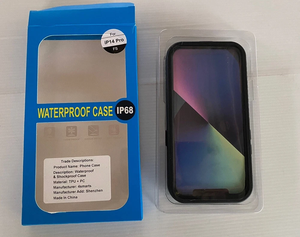 Safeguard your Apple iPhone 14 Pro with the 4Smarts IP68 Waterproof Dust/Shock Proof Case. This robust full body case offers 360 protection, shielding your device from dust, shocks, and water. Its dual-layer construction combines a soft silicone interior with a tough PC hard shell exterior, ensuring your phone remains secure and shielded from daily wear and tear. The case's transparent, hybrid design with a thin fit profile maintains the phone's sleek look while providing a rugged exterior for durability. It's fully functional with accessible controls and includes a lanyard for easy carrying. Whether you're out for a run or enjoying a day by the beach, this case ensures your iPhone is protected at all times. In unused condition. Pkease refer to pics for further details. Thank you for shopping at Funkee Munkee New & Rescued Treasures.