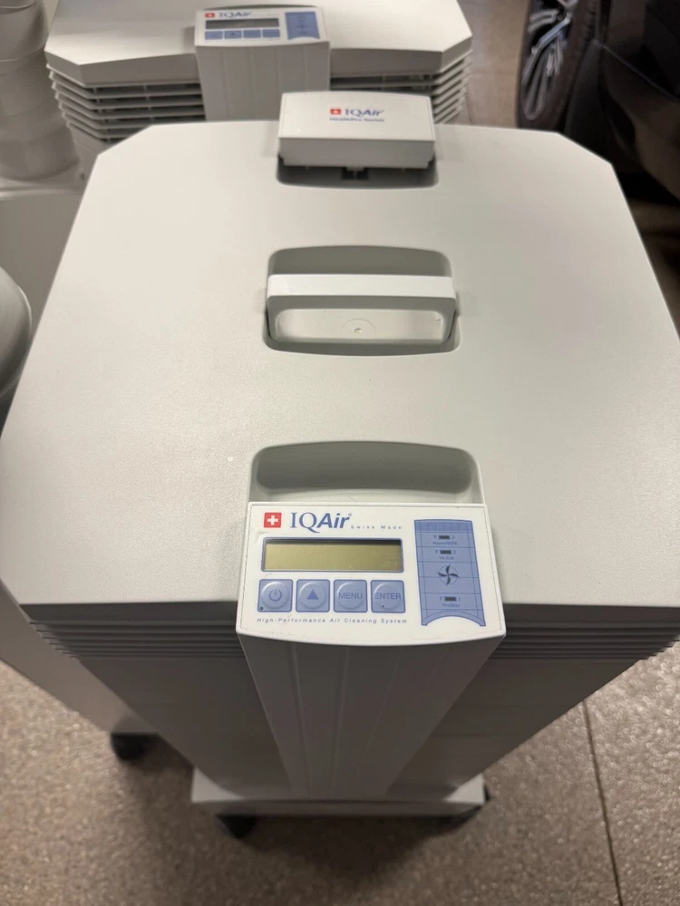 IQAir HealthPro Plus Hepa Filter with Flex Vac tubing. Perfect for dental offices(where these were used), medical offices, or lab settings. It is in great working condition and still under the manufacturer warranty. Purchased in 2020.