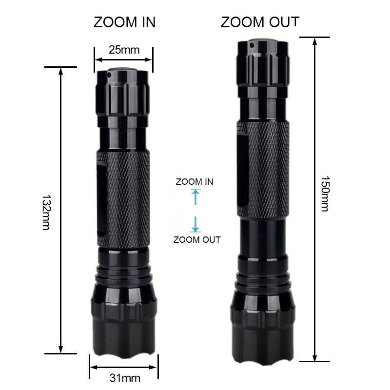 Power Source: Battery Color: Black Bulb Type: IR LED Lighting Technology: LED Battery Technology: / Operating Time: 1-5 Hours Operating Range: 25 m Brightness: 1-499 Lumens Number of Batteries: 1 MPN: Does Not Apply Material: Aluminum Features: Batteries Included, Handheld, Waterproof Type: Tactical Brand: Unbranded