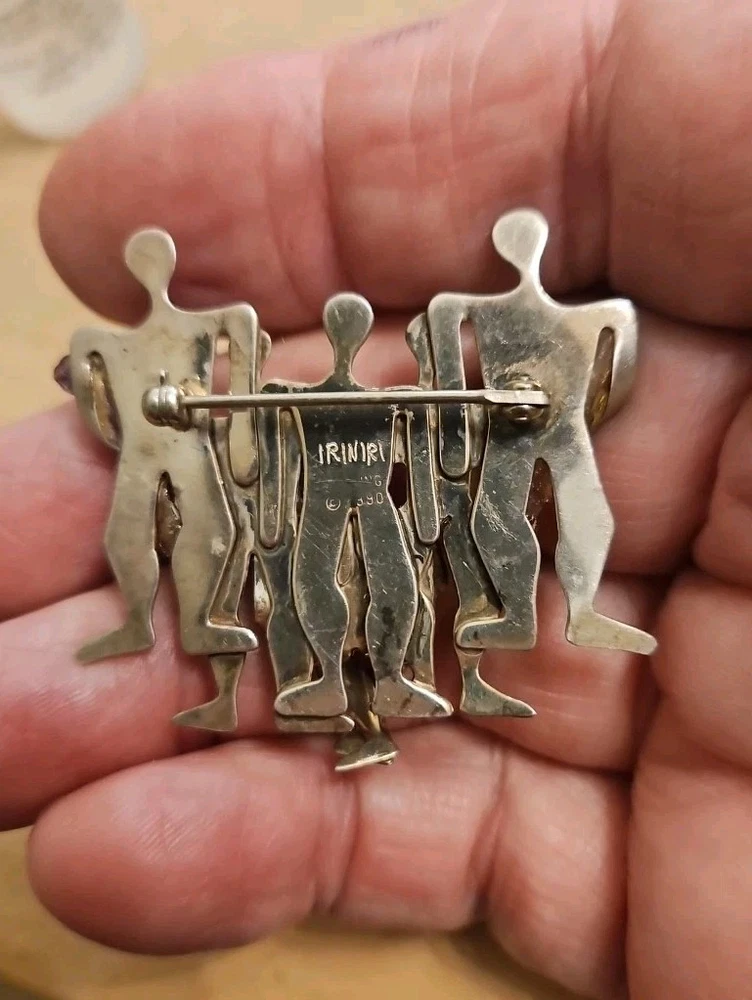 IRINIRI PEOPLE FAMILY 925 STERLING SILVER BROOCH W/ 3 STONES & SIGNED