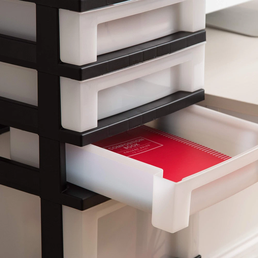If you spend more time looking for your hobby supplies than on your actual hobby, we can help. These 7-drawer rolling carts are the perfect solution for keeping all your items contained so you stay organized. Three large drawers and four shallow drawers on the plastic drawer storage unit hold everything from craft supplies, to reams of paper and more. Wheeled drawer unit comes with included casters making it easy to move the sturdy storage unit where you need it, and the built-in divided top keeps extra-small items easily accessible. Made in the USA. MULTI-PURPOSE ORGANIZER - Store a variety of household items that are frequently used in the office, closet, under-desk, kid’s room, craft room, nursery, or dorm room. MOBILE STORAGE SOLUTION - Removable wheels are included and can be attached to the foot of the chest so you can move it around smoothly, or remove them for secured placement. QUALITY - High-quality materials are used for our products. The sturdy plastic makes these durable, and the smooth glide drawers give you easy access to contents. We use recyclable material, so our products are Green Circle Certified. DRAWERS - Drawer stops are attached on both sides of drawers to prevent drawers from falling out. Drawer dimensions: 9.5 in. L x 12.5 in. W x 2.9 in. H (Shallow) / 6.7 in. H (Deep). GREAT SIZE - Dimensions: 14.3 in. L x 12 in. W x 42.1 in. H.
