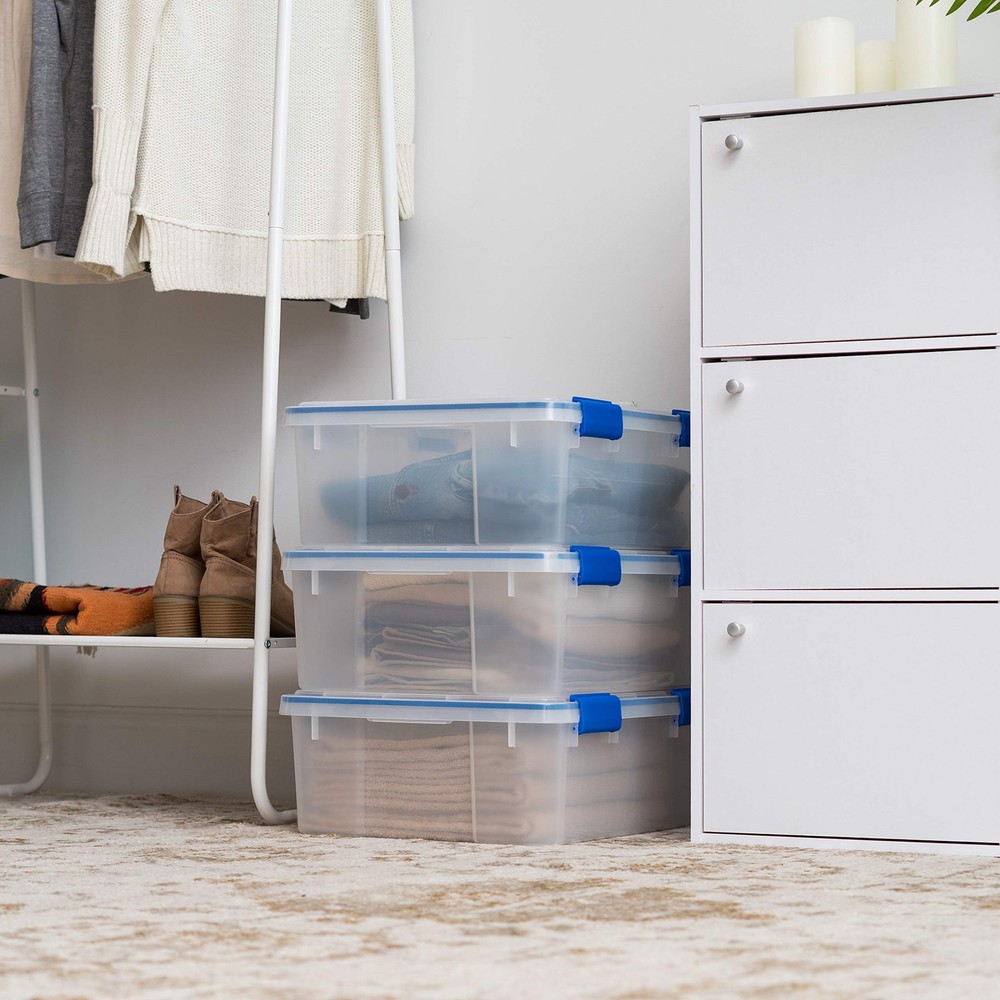 IRIS USA 13 Quart Stackable Plastic Storage Bins with Lids 6 Pack BPA Free Modular Organization Containers