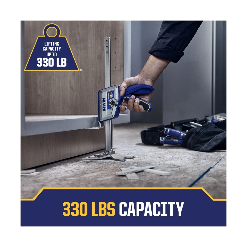 IRWIN Quick-Lift Construction Jack, Hand Lifting Jack Tool, Multifunctional, Lift up to 10" and Lift Capacity 330 lbs (IRHT83100) Description The IRWIN QUICK-LIFT construction JACK aids in a variety of lifting, leveling, holding, or installing applications. Trades professionals - builders, remodelers, cabinet installers, framers, MROs, HVAC techs - and even homeowners and DIYers benefit from the QUICK-LIFT construction JACK. Use to install cabinets, windows, doors, flooring, HVAC equipment, framing / decking, and home appliances. Lifting up to 330 lbs. And 10", this tool has a wide variety of uses within the commercial and residential space. Features: Lifts up to 10" Lifting capacity up to 330 lb Precision controlled lowering - for fine tune adjustments and levelling No load quick release - for easy and quick setting Comfort Grip - designed to be ergonomic Countersunk holes - for flush mounting Slim tapered base - provides easy access under applications Product Details: Vehicle Service Type: compatible_with_vehicle_type Material: Alloy Steel Load Capacity: 330 Pounds Maximum Lifting Height: 10 Inches Brand: IRWIN Load Capacity: 330 Pounds Maximum Lifting Height: 10 Inches Brand: IRWIN Color: No Color Item dimensions L x W x H: 5.3 x 11.4 x 18.45 inches Style: Single Quick-Lift OEM Part Number: IRHT83100 Automotive Fit Type: Universal Fit Manufacturer: IRWIN UPC: 885911930574 Global Trade Identification Number: 74 Part Number: IRHT83100 Item Weight: 5.41 pounds Product Dimensions: 5.3 x 11.4 x 18.45 inches Item model number: IRHT83100 Size: No Color Finish: Brushed Pattern: Construction Tool Shape: Rectangular Power Source: hand_powered Item Package Quantity: 1 Included Components: IRWIN QUICK-LIFT Construction Jack Batteries Required?: No Warranty Description: No_warranty Date First Available: March 1, 2024 Delivery We Do Not Ship Outside of the Continental US. Return Policy All items qualify for returns within 30 days of receipt. Seller is responsible for return shipping on any item that is not damaged. Feedback We take our reputation seriously, we buy and sell online, so we understand the value of trust. If you are unsatisfied with your order, please contact us and we will work with you to resolve it to your satisfaction.