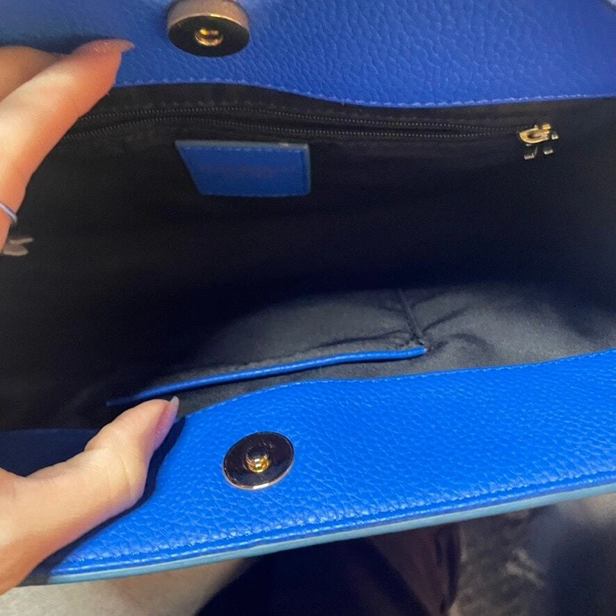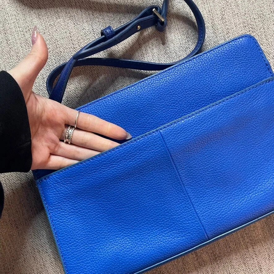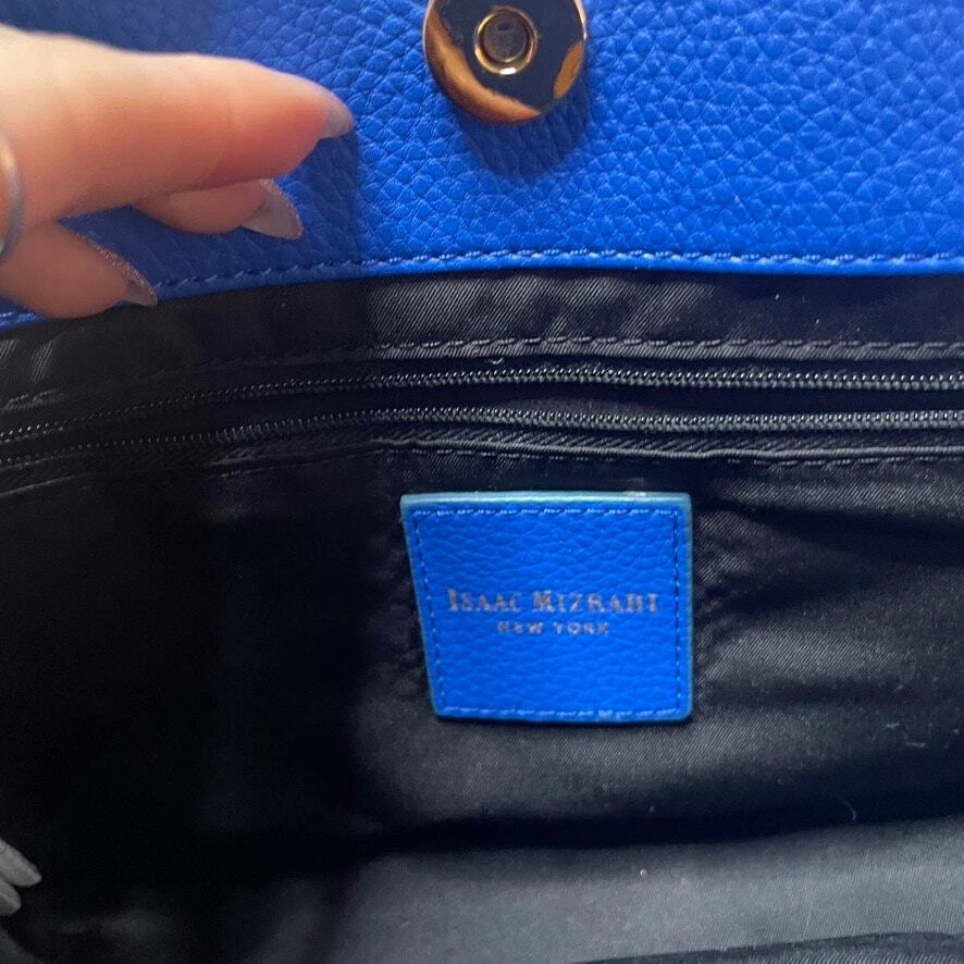 ISAAC MIZRAHI Royal Blue Purse Side Back Crossbody Purse Pockets Magnet Magnet closure Inside zip pocket Outside slit pocket Adjustable strap Outer Label Branding Great condition Minor wear on strap as seen in photos