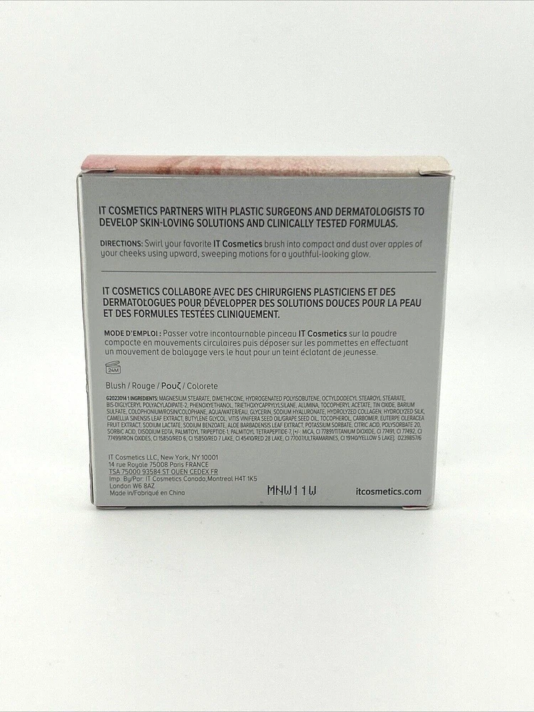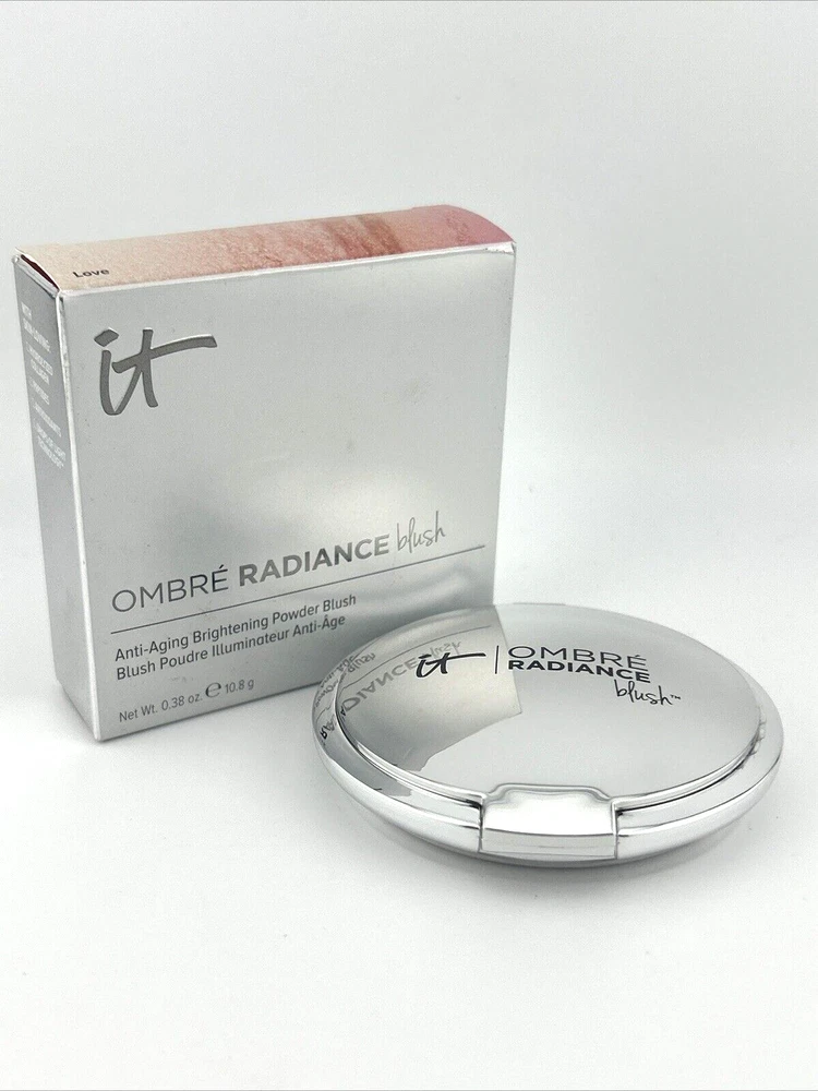 IT Cosmetics Ombre Radiance Blush in Love - Anti-Aging Brightening Powder - 0.38 oz / 10.8 ml - New Enhance your natural beauty with the IT Cosmetics Ombre Radiance Blush in Love . This stunning blush features a beautiful ombre design that seamlessly blends together to provide a vibrant pop of color while delivering a radiant finish. Formulated with anti-aging ingredients, this brightening powder not only adds color but also improves the appearance of your skin. Features: 0.38 oz / 10.8 ml of blush, brand new and sealed Ombre design allows for customizable application, creating a gradient effect Infused with skin-loving ingredients for a youthful glow Benefits: Brightening formula helps to lift and illuminate your complexion Lightweight, blendable texture ensures a smooth application with a natural finish Anti-aging properties assist in reducing the appearance of fine lines and enhancing skin texture How to Use: Using a blush brush, apply the product to the apples of your cheeks, blending outwards towards your temples. For a more intense look, layer the color to achieve your desired brightness. Add a touch of radiant color to your makeup routine with the IT Cosmetics Ombre Radiance Blush in Love , and enjoy a fresh, youthful glow that lasts all day!