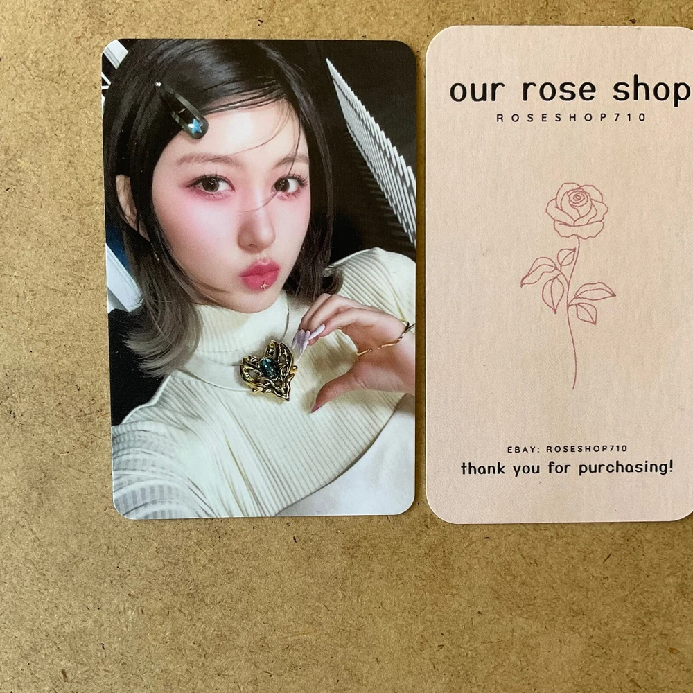 No restocks planned. (Please check profile for information on restocks.) All photocards are authentic, original goods. No returns on photocards. For US buyers : USPS tracked shipping from the US. For international buyers : Please DM before purchase, we can check the shipping fees to ensure correct charge. We are not responsible for any possible customs fees incurred. Description Artist: IVE Type: Photocard, Lenticular photocard is plastic + cardboard Will be shipped safely in a shipping shield or top-loader. Item condition: There is no noticeable damage (unless mentioned) , however there may be small scratches or other album damages. Fine scratches, damage, discoloration, slight warping, etc may be possible during packaging and delivery, this is not a reason for exchange. For " Gaeul - OFF **READ DESCRIPTION** " variation, please note the light scuff mark on the photocard and view the images of the variation carefully before purchase. This is an example, but this scuff mark is present on all Gaeul - OFF photocards in a similar location. Shipping We will ship in 1-3 business days from receiving payment. Items are on hand and will ship from the USA. All orders will be sent with a tracking number.