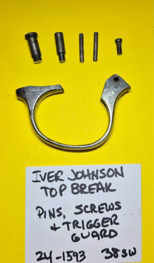 Type:TRIGGER GUARD, PINS & SCREWSSeller Notes:“NICE CONDITION IVER JOHNSON TOP BREAK .38 SW TRIGGER GUARD, PINS & SCREWS #24-1593”Color:Silvergtin13:DOES NOT APPLYBrand:Iver Johnson ArmsFeatures:FACTORYFor Gun Type:HandgunCountry/Region of Manufacture:United StatesFor Gun Make:Iver Johnson ArmsUPC:DOES NOT APPLYMPN:DOES NOT APPLYGauge/Caliber:.38 SWMaterial:SteelModel:TOP BREAKVintage:Yes
