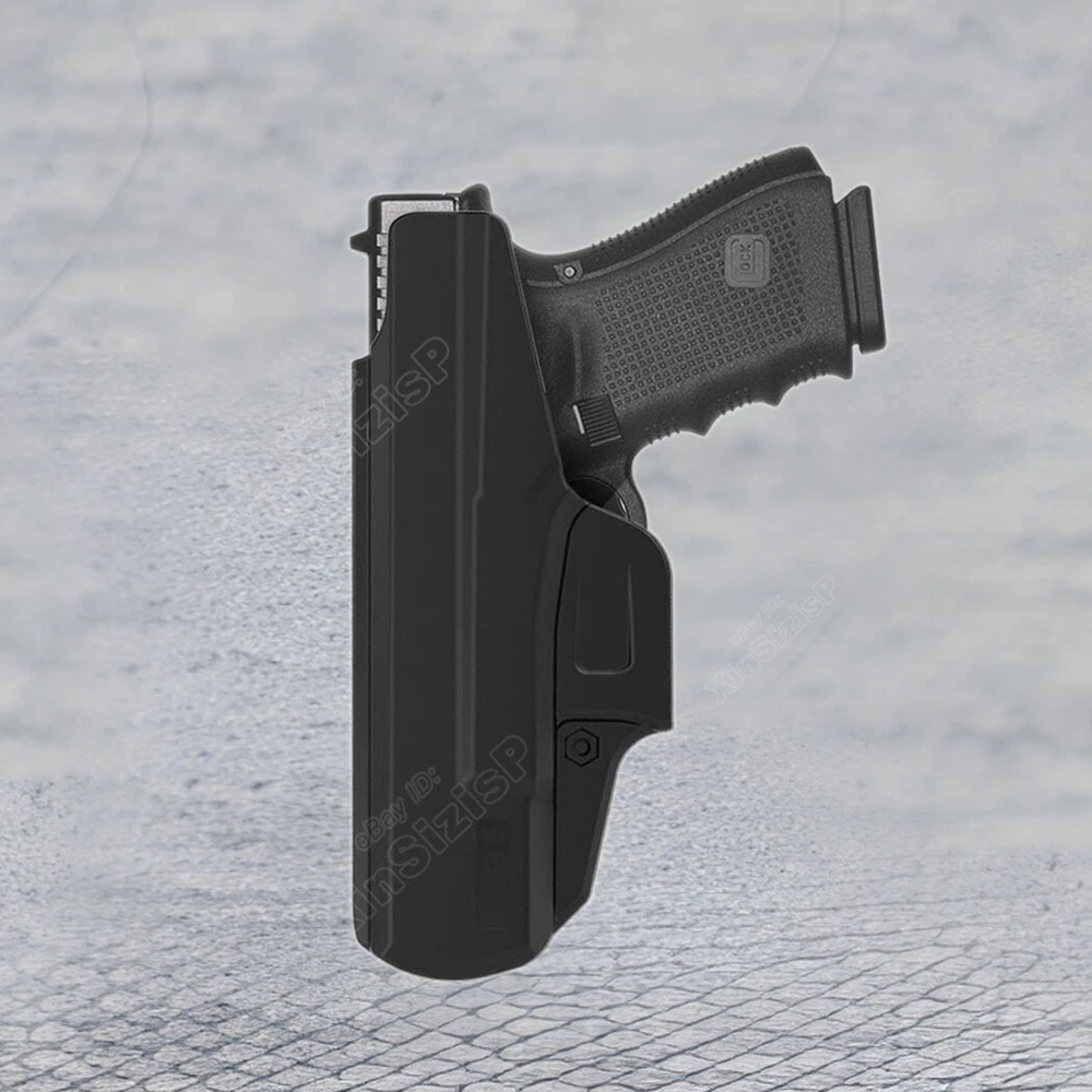 High Quality Military & Police Grade Polymer IWB Holster Specially Designed For Fast Draw During Duty Or Shooting Competition. Tactical Inside Waistband H olster Fit Glock 19 /19t /19x/32(Gen1-5) and Glock 23 (gen 1-4 ) ( I t can not fit the gun with Optic Mount Mini Sight a bove on the end of the barrel , and can not fit the gun with laser , embedded chassis, and flashlight style ) Adjustable by the Allen key that is provided with your holster to loosen or tight the screw on the belt loop and adjust. The retention of the holster can also be adjusted with the Allen key, by adjusting the two screws placed in front of the trigger guard. Unique belt J-clip sits under the belt and over the pants, which ensures more table releasing and holstering to prevent accidental shipping or falling. Compatible belt clip fits belt width up to 2 inches. Tough, Durable Material - Custom-molded body made of polymer stronger than leather that will wear out, adapt to every bad environment In the Package: · 1* Holster · 1*Allen Key Shipping: Ships same day or next except Sundays and Holidays ! Free shipping! Ship by USPS First Class Package. 100% MONEY BACK GUARANTEE. Any question please be free to contact with us .Thanks!
