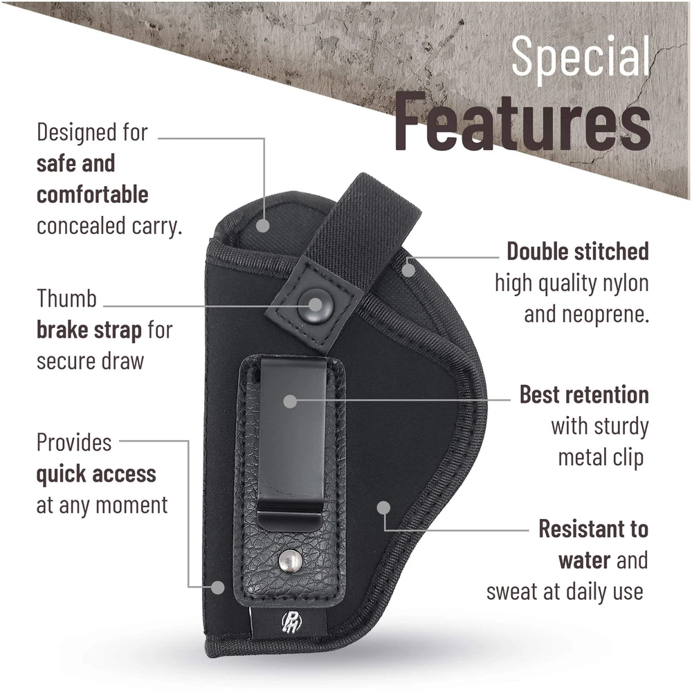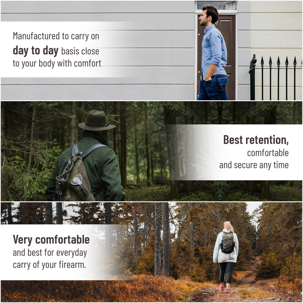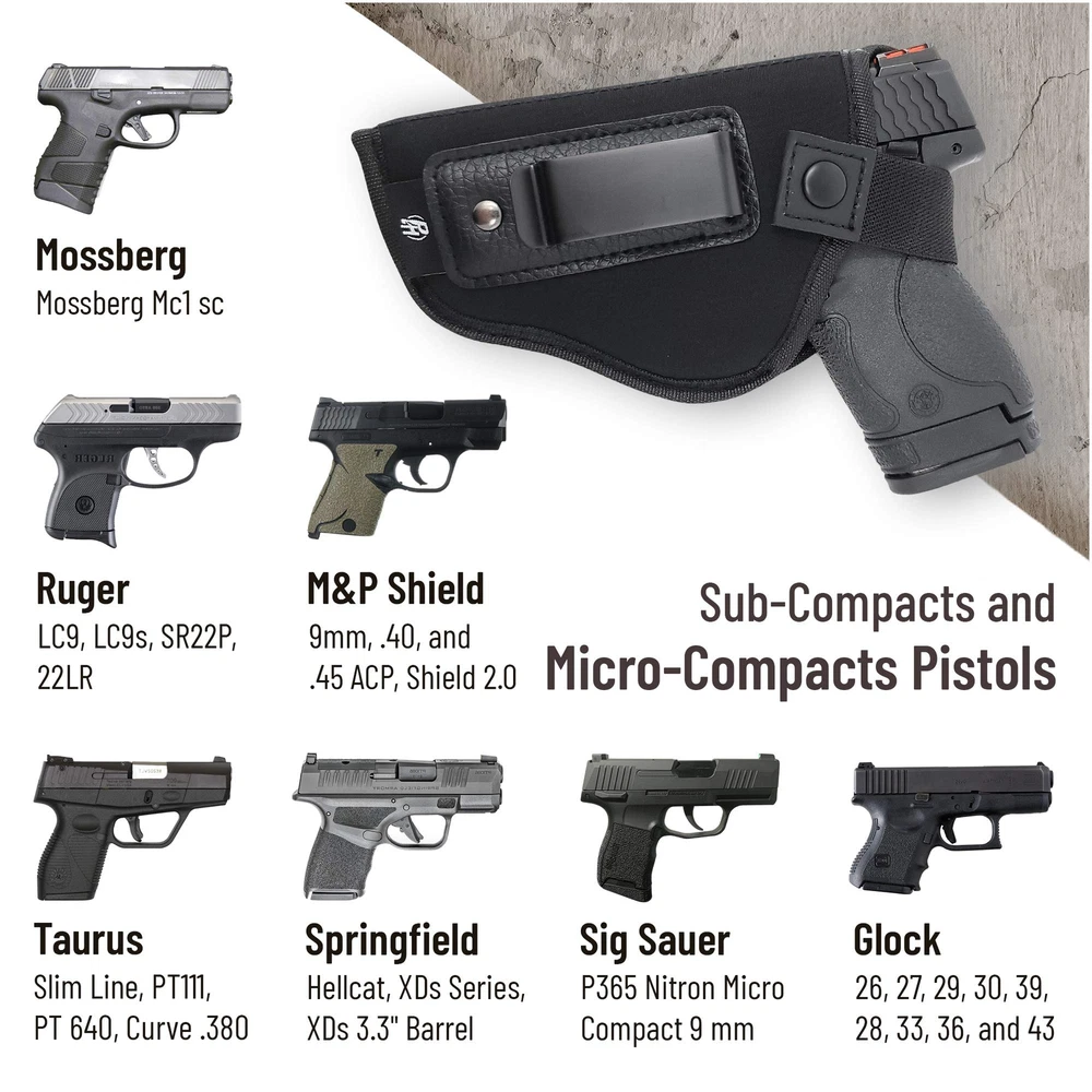 Strong Metal Clip for Maximum Retention Safe, Easy and Comfortable to Use as Concealment Double Stitched for Strength and Durability **** This is a LEFT HAND DRAW PRODUCT **** Fits: Glck 19 19X 23 25 26 27 28 29 30 32 33 36 38 39 43 48 | Springfield XDs | Taurus GX4, 707, SLIM, 703, 740, PT111 G2 Millenium Pro, PT911 | Walther PK380 / PPS / CCP | Colt Defender 3" | M1991A1 3.5" | Ruger SR9C, SR22, SR40c, P95 | SIG P239 229 250 C, Sig P365 XL | Kahr CW 40 | CT9 BERSA Thunder 9mm / .40 Caliber / .45 Cal, Bersa BP9cc 1911 3" | Browning 3" | S&W M&P c, Shield .45 / SD 9 / 40 VE/ Shield .40, S&W Bodyguard 2.0 | Diamondback DP 9mm | SCCY CPX-1 | Grand power P11 | CZ P07 | H&K Compact | Beretta PX4 Storm Compact | Interarms EPK | Magnum Research Micro Desert Eagle 9mm Steel Frame