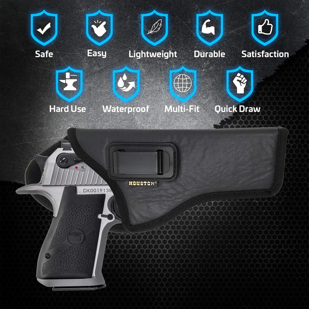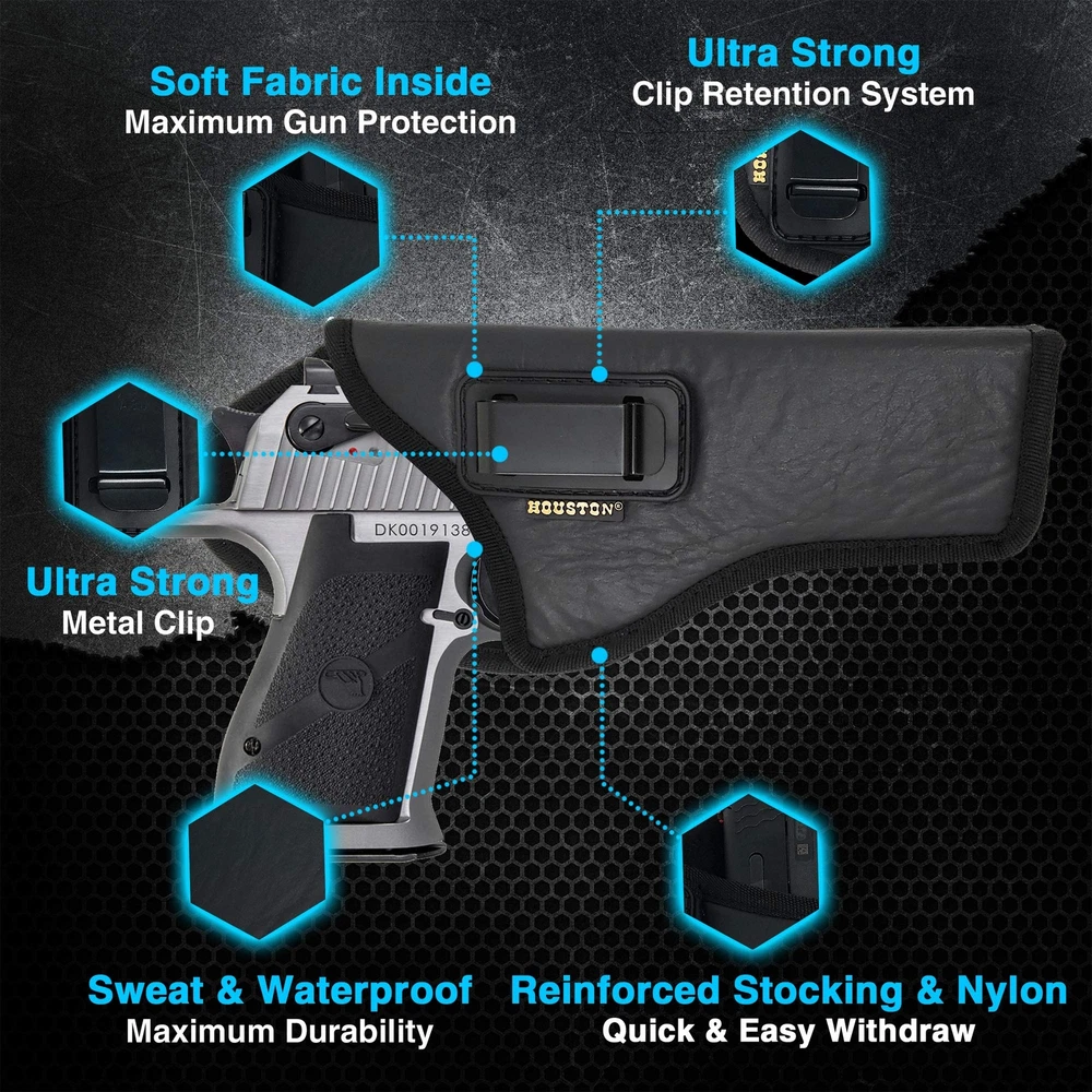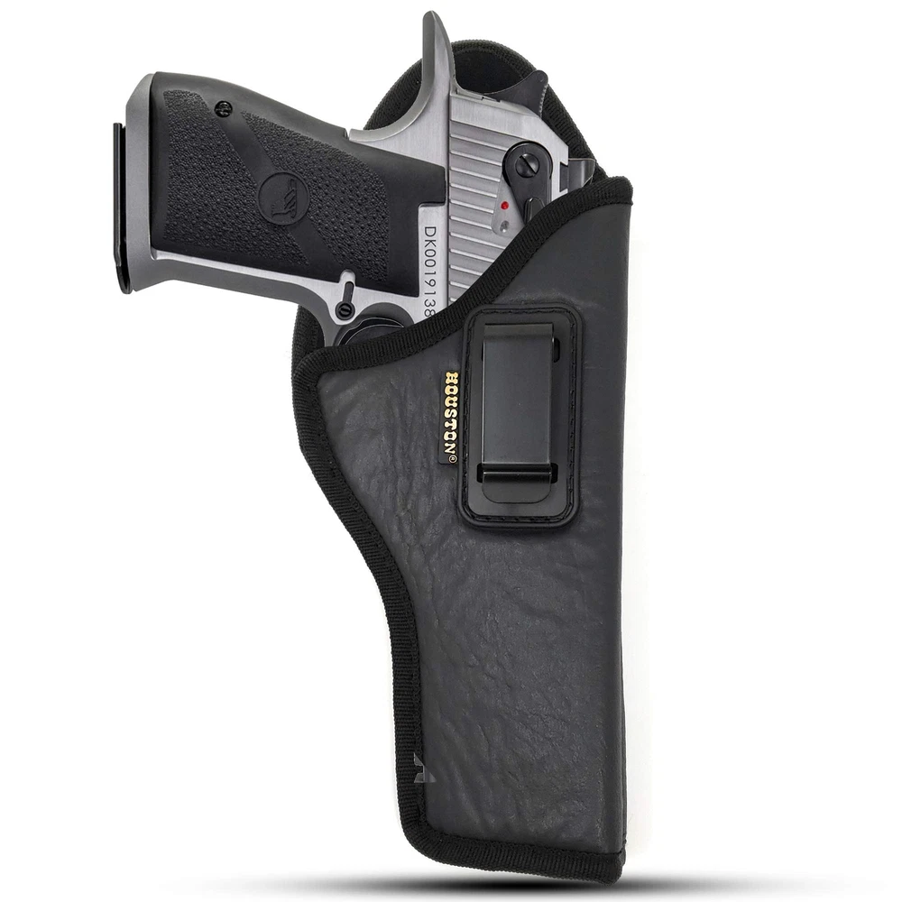 π₯ Product Features and Benefits π₯ πͺ Strong Metal Clip for Maximum Hold and Retention. βοΈ Safe, Easy and Comfortable to Use as Concealment. π Carefully Design for Resilience, Comfort and Protection. π¦ Sweat and Water Resistant. πΊπΈ Design in USA and Handmade In Argentina. π¨ Multiple Stitched for Strength and Durability. βοΈ Reinforce Stocking & Nylon Borders. π€ ECO Leather Material. π‘οΈ Soft Suede Lined Fabric Inside For Maximum Gun Protection and Durability. β οΈ IWB - Inside The Waistband - Appendix Carry Model. π Product Measures: 6.7" x 3.7" x 1.4". π Fits: MAGNUM RESEARCH Magnum Research Dessert Eagle .50 / .50AE / .357 / .44 Caliber 6" Barrel π―100% Satisfaction Guaranteed π **** This is a RIGHT HAND DRAW PRODUCT **** π π **** Refer to Diagram to pick correct Size Holster **** π Fits Magnum Research Dessert Eagle .50 / .50AE / .357 / .44 Caliber 6" Barrel Strong Metal Clip for Maximum Retention *** Refer to the Diagram to pick the correct Size Holster *** Safe, Easy and Comfortable to Use as Concealment Double Stitched for Strength and Durability **** This is a RIGHT HAND DRAW PRODUCT ****