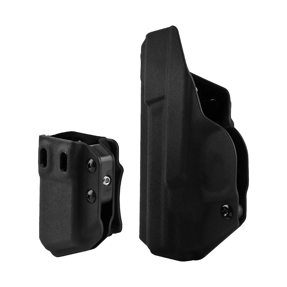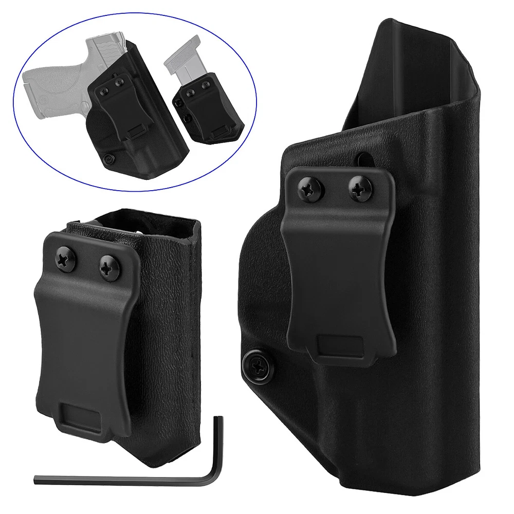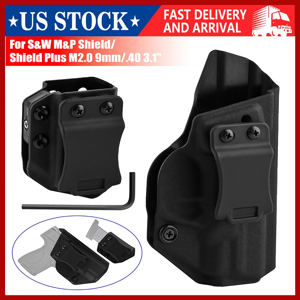 Product Description IWB Holster Right Hand Fits S&W M&P Shield/Shield Plus M2.0 9mm/.40 3.1" Pistol Holster & Universal 9/.40 Double Stack Mag Carrier Features: 1 【Full Cover Trigger, No Scratch, No Jitter】The holsters for Smith & Wesson M&P Shield/Shield Plus M2.0-9mm/.40 3.1" Pistol Holster, full covering all access to the trigger, securely retained with minimal drag, which can avoid all possible accidents. Rounded, Hand Finished Edges, adds to a layer of comfort without digging into the body or thigh, the trigger guard is intentionally undercut to promote a higher grip on the and allow for magazine release while the firearm is fully holstered. 2 【FIT LIKE A GLOVE WITH AN AUDIBLE CLICK】Thanks to the Adjustable Retention Screw, you can dial in perfection with a Phillips Screwdriver. The inherent positive retention “positive click SNAP”sound,ensures the firearm is secure when holstered. 3 【Adjustable Cant & Retention Pressure】The cant settings are easily adjustable from 0 to 30 degrees. Be it appendix, strong-side, kidney carry, it allows for a perfect grip on the for Smith & Wesson M&P Shield/Shield Plus M2.0-9mm/.40 3.1". 4 【1.5'' Belt Fit Perfect】Smith & Wesson M&P Shield/Shield Plus M2.0-9mm/.40 3.1" IWB holster belt clip is suitable for 1.5'' belt, with hook in buttom, it stick firmly in your belt when drawing and holding. 5 IWB/OWB Mag Carrier is compatible fits virtually every 9mm/.357 Sig/.40 Double Stack and Staggered Stack Magazine,Including but not limited to for Glock models 17,19,19x,22,23,25,26,27,28,31,32,33,34,35,37,38,39 and Glock 43x/MOS,Glock 48/MOS,Sig P320/P365/P365 SAS/P365 SAS w/P365X ,S&W M&P Compact, S&W M&P M2.0/PLUS,CZ P07/P10C,H&K VP9/VP40/VP9SK,Springfield armory XD/MOD.2/XDM/HELLCAT,Taurus PT111 G2/G2C/G3C etc. 6 High quality nylon material, durable and reliable for long life. Specifications: Material: Nylon Size: 15.7*8.6*2.9 CM Weight: 67g Pistol holster type: IWB Hand orientation: Right Fit belt size: 1.5" For pistols: Fits S&W M&P Shield/Shield Plus M2.0 9mm/.40 3.1" ( NOT fit attachments like light/laser ) Mag carrier type: IWB/OWB Mag carrier Hand orientation:Right/Left For magazines: 9mm/.357 Sig/.40/ Double Stack and Staggered Stack Size: 8.1*5.6*4.3 CM Weight: 46g Package Included: 1x Gun holster 1x Mag carrier 1x Wrench Payment Shipping Terms Returns Contact Us We accept PayPal only. If buyer want to delay the payment because of financial problem, please contact me by the ebay message within 3 days Payment via PayPal (PayPal accepts all major credits/debit cards and eCheque) ECheque payment will tak e 3-10 days to get clear, thus DELAYing the shipment. Handling time: 1 business day (Orders are not processed on weekends & holidays) Tracking information will be sent once item is shipped. Local pick-up is unavailable at the moment. For international shipping and shipping to Guam, Hawaii and Alaska, Please contact us before placing the order. Item is shipped to ebay address. Leaving correct address can minimize delay. For any issues with Defects, Return, Item Exchange request, please contact us first and send us a message first before opening any type of case or request. We devote ourselves making EVERY CUSTOMER in 100% Satisfactory and resolve any problem. We highly value and appreciate your business. Thank you. No returns will be accepted without an RMA number. Please contact us for the RMA number. Return is acceptable within 30 days of delivery. Return for replacement or money back is optional. Returned items must be in the brand new, unaltered and resalable condition. Seller is not responsible for any labor cost, expense in a dealer store, or damage due to wrong installation. Return is accepted within 14 days after the buyer's receiving the item. (Excluding contrived damagement or misusage).100% money-back Guaranteed! All product will be tested in 100% before delivery.If the item is defected by the processing of postage,Buyer has up to 14 days from date of receipt for exchange of a new one.All shipping charges for returned products are to be paid by the buyer,Please contact us for the return address All messages will be answered within 24 office hours. Please contact us either by clicking "contact seller" in the "purchase history" section or simply click "ask a question" at the bottom of this page. If you are unsatisfied with our item or service, please contact us before leaving any feedback. We are committed to resolve all issues in a friendly and satisfactory manner. We always reply to messages within 2 business days (off-duty at weekend). If you do not get a response from us, then please check your junk or spam mailbox. Payment We accept PayPal only. If buyer want to delay the payment because of financial problem, please contact me by the ebay message within 3 days Payment via PayPal (PayPal accepts all major credits/debit cards and eCheque) ECheque payment will tak e 3-10 days to get clear, thus DELAYing the shipment. Shipping Handling time: 1 business day (Orders are not processed on weekends & holidays) Tracking information will be sent once item is shipped. Local pick-up is unavailable at the moment. For international shipping and shipping to Guam, Hawaii and Alaska, Please contact us before placing the order. Item is shipped to ebay address. Leaving correct address can minimize delay. Terms For any issues with Defects, Return, Item Exchange request, please contact us first and send us a message first before opening any type of case or request. We devote ourselves making EVERY CUSTOMER in 100% Satisfactory and resolve any problem. We highly value and appreciate your business. Thank you. No returns will be accepted without an RMA number. Please contact us for the RMA number. Return is acceptable within 30 days of delivery. Return for replacement or money back is optional. Returned items must be in the brand new, unaltered and resalable condition. Seller is not responsible for any labor cost, expense in a dealer store, or d