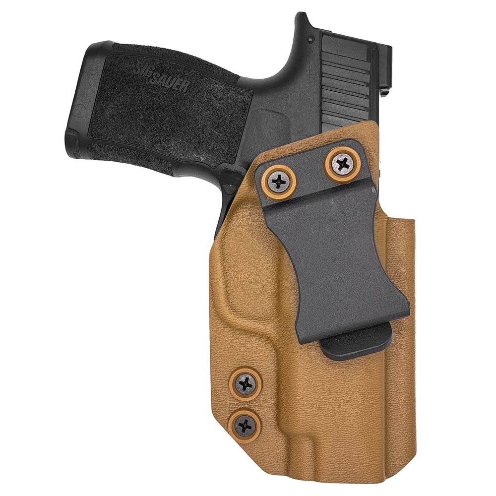 Order before 2PM Central Time ships Same Business Day! Monday - Friday. Our Sig Sauer P365XL Inside the Waistband (IWB) holsters are designed to be lightweight and concealable to wear for everyday carry. All holsters come standard with Adjustable Cant 0 -20 Degree. A full sweat shield to help shield the firearm from perspiration and adjustable retention for a Positive “click” ensures the firearm is secure when holstered. All holsters are optic ready and can accommodate a wide variety of red dot sights, from RMRs to SROs. Compatible With: Sig Sauer P365XL, P365 Spectre Comp, P365XL Romeo Zero (Also Compatible with Thumb Safety Version). KEY FEATURES: FOMI Belt Clip 1.50” Optic Ready accommodates a wide variety of red dot sights, from RMRs to SROs. Adjustable Cant - 0-20 Degree. Full Sweat Shield. Adjustable Retention with Positive click. Raised sight channel. Open-ended muzzle. Rounded, Hand Finished Edges. Material – .080” Thick Kydex/Boltaron. Blackened Stainless Steel Hardware. Handcrafted & Made in Texas.