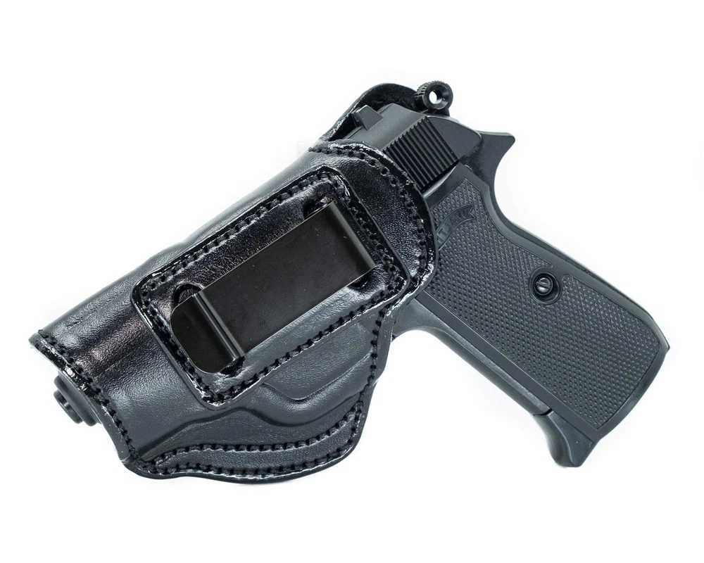 .380 PISTOL HOLSTER WITH PERFECTED FIT for Ruger LCP, LCP II .380 ACP | Colt Mustang | Diamondback DB380 | Kahr CW380, P380 | Keltec P32, P3AT | Kimber Micro 380, Solo | S&W Bodyguard 380 | Sig Sauer P238 | Walther PPK, PPK S and Others TOTAL COMFORT AND PROTECTION - Premium cowhide leather inside the waistband holster for comfortable wear with suede lined interior to protect your gun FULL LENGTH SWEAT GUARD - Leather gun holster features a high back that provides a shield between the body and the firearm EASY CLIP AND REMOVAL - Tempered steel spring clip provides easy removal of the holster and fits belt widths up to 1.75" (45 mm) EVERY DAY CONCEALED CARRY - no printing on your clothes. 100% satisfaction guarantee and limited lifetime warranty;