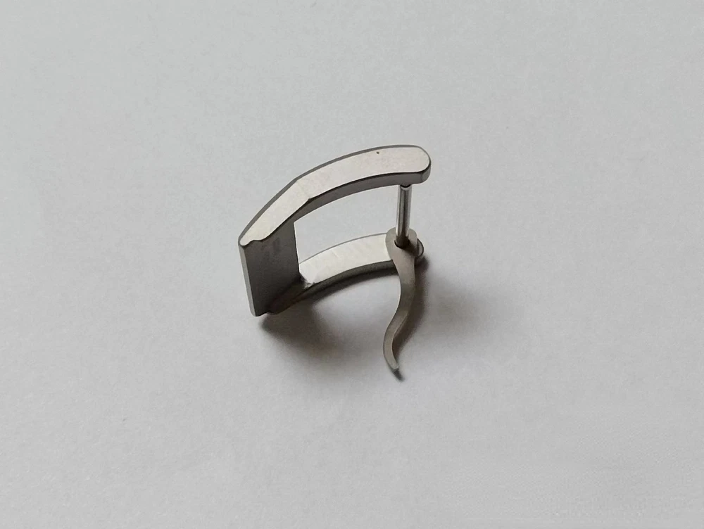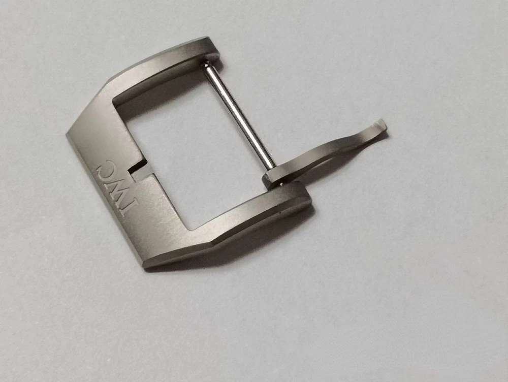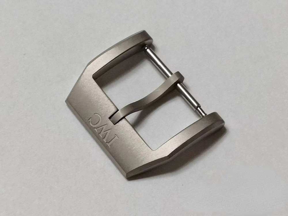 The Buckle inner width where it attaches to the watch strap is is 18mm. Genuine OEM Authentic IWC 18mm Brushed Titanium Watch Pin Buckle.