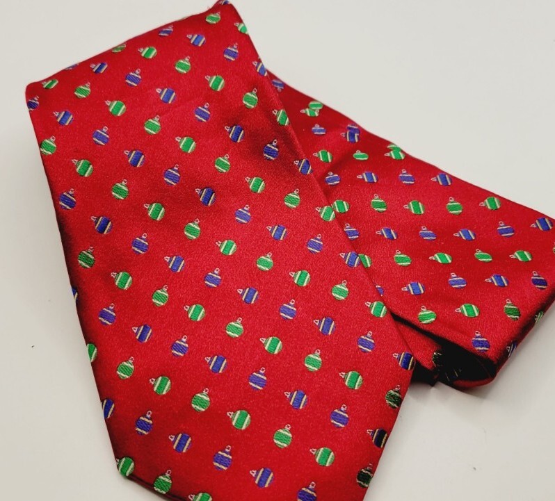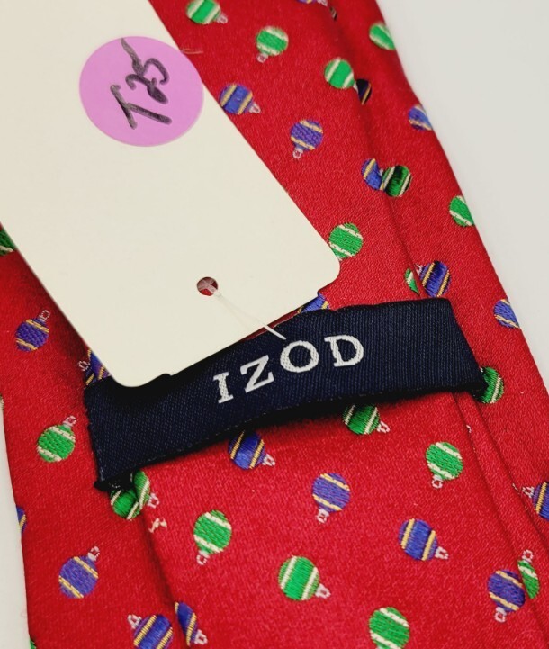 IZOD Men Silk Neck tie Red ornaments Christmas balls New 3.5" X 58"