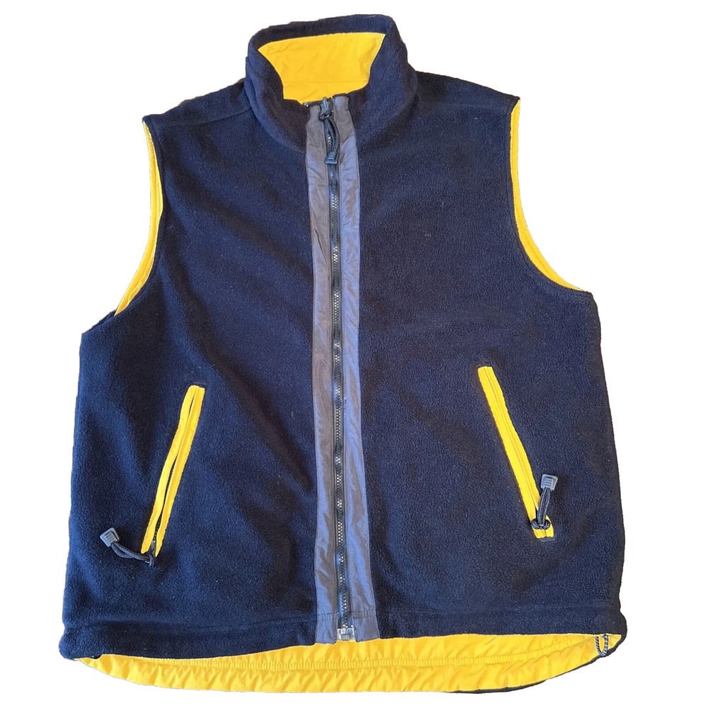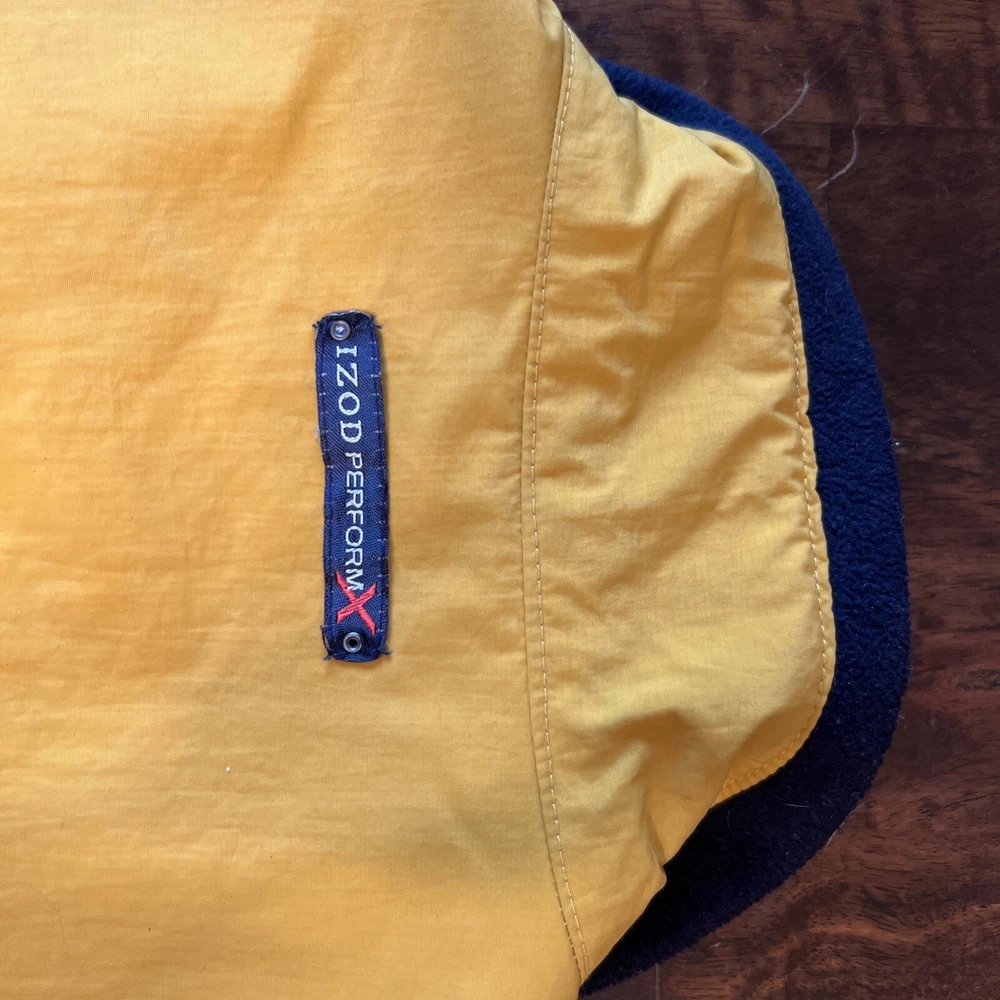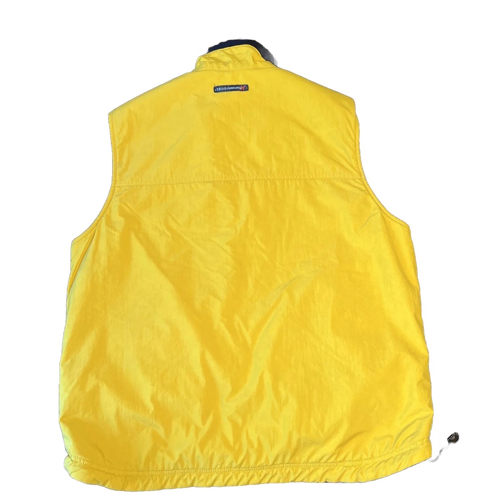 Pattern: Solid Size Type: Regular Color: Black & Yellow Fabric Type: Fleece Model: IZOD PERFORMX Department: Men UPC: does not apply Occasion: Casual Brand: IZOD Closure: Zip Style: Reversible zip up vest Theme: Outdoor, Reversible Features: Full Zip, Reversible, Adjustable waist, Cord lock Vintage: No Size: L Type: Vest Accents: Zipper Lining Material: Polyester Outer Shell Material: Polyester gtin13: does not apply