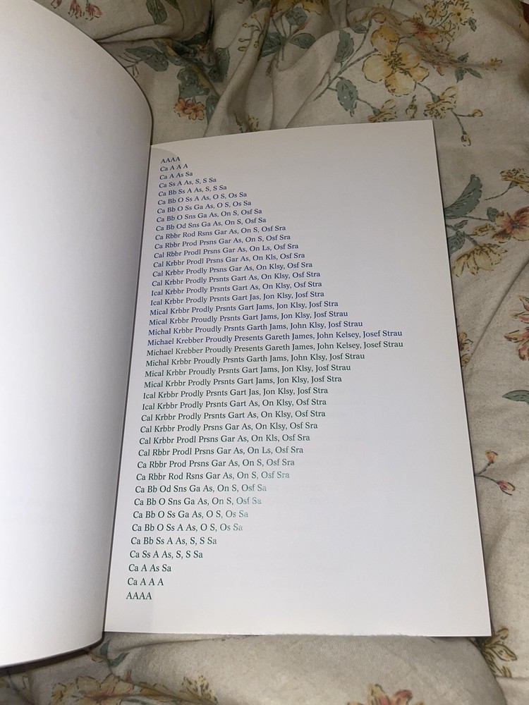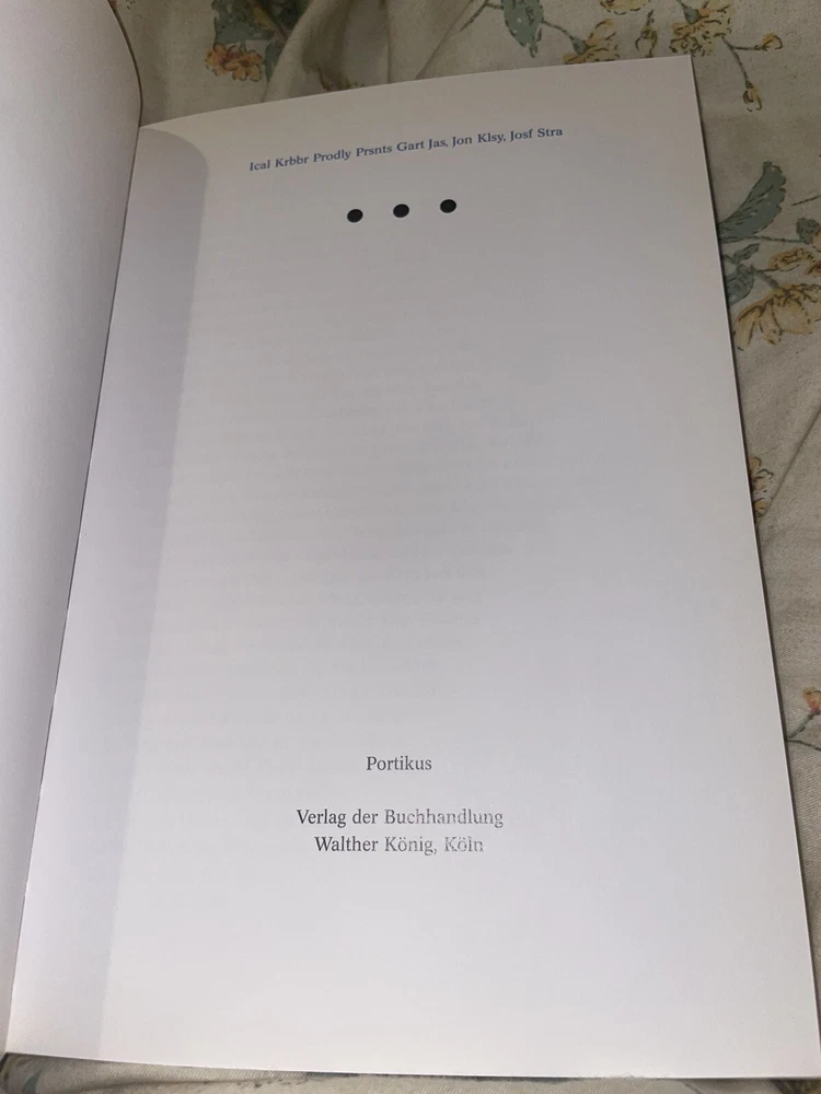 NEAR FINE copy of this collaborative book by the artists Michael Krebber (Germany), Josef Strau (Austria), Gareth James (US?), and John Kelsey (US). This copy includes a piece of card stock tipped in with an Inscription by Krebber! There’s negligible edge wear to the wraps, and that’s about it for damage. Overall a really nice clean copy