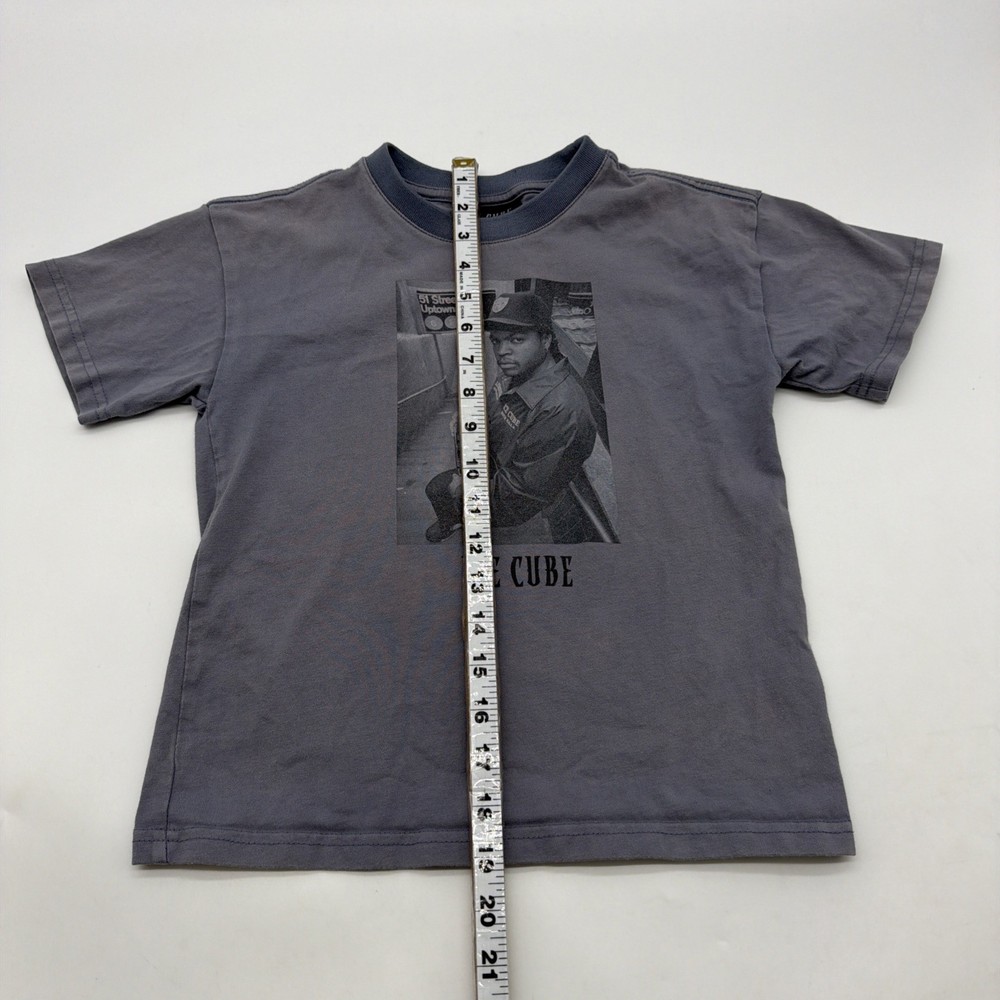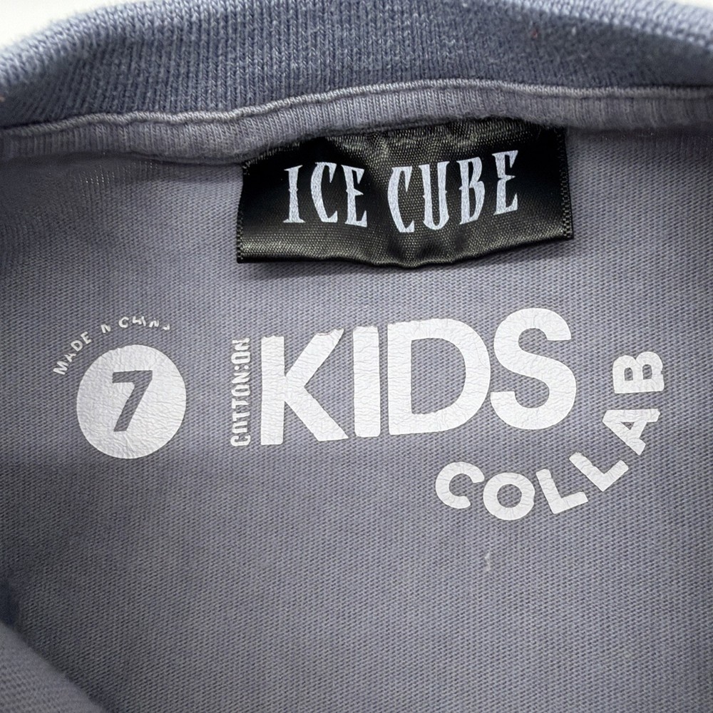 The Ice Cube Collection T-shirt for kids boys in size 7 is a stylish and comfortable addition to any young boy's wardrobe. Made from 100% cotton in a light fabric wash, this gray short-sleeve shirt features a graphic print of a boy character with a relaxed fit. Perfect for casual occasions, parties, or travel, this pullover shirt with a crew neck and logo accents is suitable for all seasons, including summer, fall, and spring. Ideal for activities like beach trips, dance, and basketball, this cartoon and hip hop themed t-shirt from the brand Icecube is sure to be a hit with any young trendsetter. Check pictures for flaws and measurements