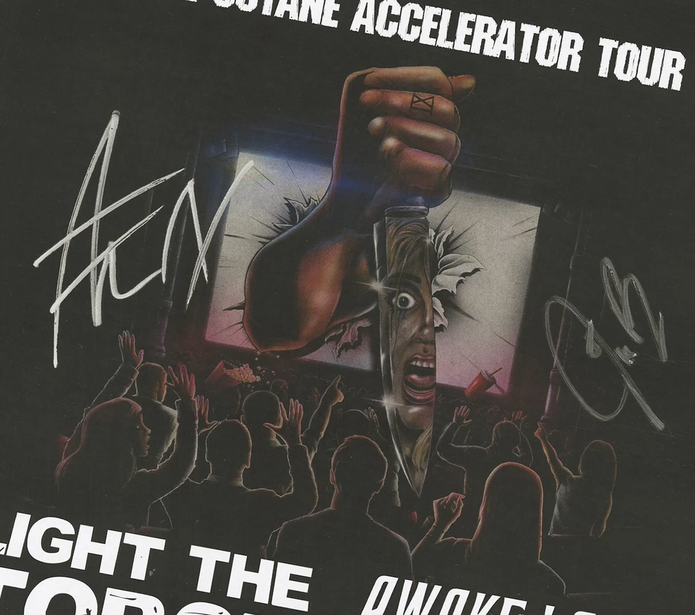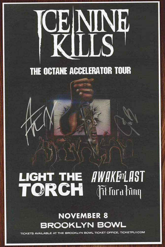Ice Nine Kills The Octane Accelerator Tour concert poster Las Vegas, NV - 2019 While I was backstage at the show, I had this poster signed by Joe Occhiuti and Spencer Charnas I've never gotten around to framing the poster, so I am going to let it go. Size: 1 1 x 1 7 inches