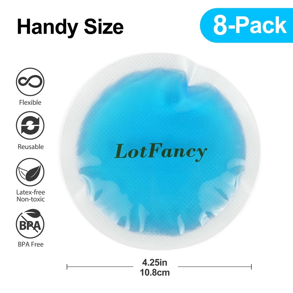 Tired of using uncomfortable old ice/hot bags? We've got your solution our hot & cold gel pack is specially designed to fulfill your needs in an easy, soft and comfortable way ideal for cramped and knotted muscles, or any kind of physical pain heat therapy is recommended by physical therapists. Stop living in pain relief with the hot/cold gel-packs is guaranteed as you can apply either cryotherapy or thermotherapy (cold or warm) to reduce the pain and apply the right healing therapy. Why is it so comfortable? What makes it so special? Well, this gel is dense, which allows it to hold its temperature for a long time, and also flexible, and soft so it conforms to the body area being treated. Usage for cold treatment place the gel-pack in a freezer for at least 2 to 3 hours. Unlike other cold-packs, this gel-pack won't become rigid under ordinary freezer temperatures. Usage for warm treatment a microwave oven can be used. Microwave: Start out by heating for 20-second intervals until the pack reaches the desired temperature. After removing from the microwave, knead and flex the gel-pack to even out the heat. Caution: Be sure to cover the bag with a towel or a covering until you get the desired temperature, people with nerve damage in the area being treated should consult a doctor. Body friendly: These packs use nontoxic sodium carboxymethyl cellulose (cmc) and glycerin to store up either heat or cold. Package include: 6 x hot & cold gel packs will provide you with a 1-year warranty . SAFE & COMFORTABLE TO USE: Gel pack is filled with nontoxic CMC & glycerin, latex-free, BPA free; Safe for all ages; Each gel pack has a cloth backing on one side for a more gradual/gentle treatment; Medical grade pvc side for instant hot or cold treatment CONVENIENT TO USE: 4.25 inch diameter, round ice packs are ideal for wisdom teeth, breastfeeding, eyes after surgery, TMJ, small joint injuries, nursing aid, reduce pores, sinus pressure, headache, migraine, bumps and bruises, nose bleeds, toothache, tooth extraction, injection HOT COLD THERAPY: The gel packs are both Microwave and Freezer safe; Store ice packs in the refrigerator or freezer to use as small cold compress; Heat hot pack in the microwave to use as heat therapy MULTIPURPOSE: Hot or cold therapy for a variety of needs; Use as hand warmers, skincare or beauty treatment, sore joints or muscles, kid's boo boo pack, a must-have for any first aid kit, perfect for small injuries NATURAL RELIEF: Hot cold pack provides instant pain relief for puffy / tired eyes, sprains, strains, swelling, bites, bumps, bruises, sports injuries, migraines, sinus pain, laser treatments, discomfort, dermabrasion, muscle aches and more