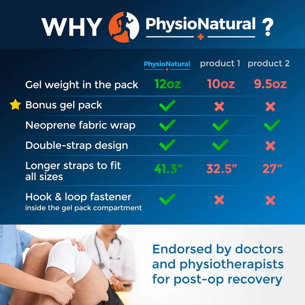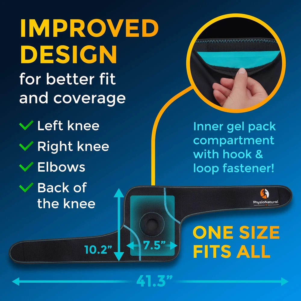 Does your knee pain get in the way of doing what you love? Are you tired of avoiding activities and household chores that aggravate your condition? Have prescription and over-the-counter painkillers failed to provide relief? Or have you resigned yourself to living with pain to avoid the cost, side effects, and risk of addiction that come with drugs? temperature therapy gel packs are a proven treatment that not only relieve pain but support your body's natural healing processes, so you can live an active lifestyle sooner and longer. The Knee Ice Pack and Wrap: ✔ Relieves pain instantly ✔ Minimizes injuries, reduces inflammation, and helps you recover faster ✔ Heals without harmful chemicals ✔ Fits knees of all sizes with a fully adjustable design ✔ Stays in place during physical activity ✔ Contains more gel than most competitors, improving heat and cold retention for longer therapy sessions When you need a natural healing option for your knees, hot and cold therapy is the way to go. The versatile power of heat and ice can provide effective relief for knee pain caused by a wide variety of conditions. The Knee Ice Pack and Wrap is recommended for: • Acute sports injuries, including sprains, strains, bruises, fractures, dislocations, and swelling • Chronic knee issues, such as stiffness, arthritis, and joint locking • Meniscus tears and other cartilage injuries • Injuries to the ACL, MCL, and LCL tendons • Recovery after total knee replacement or reconstructive knee surgeries Package includes: • 2 medical-grade gel ice packs 9"x7", non-toxic, CE and FDA approved • Adjustable neoprene cover OUR GUARANTEE: With , you take on absolutely no risk because of our one year , money back guarantee! Click add to cart now! CHOOSE NATURAL PAIN RELIEF INSTEAD OF HARMFUL CHEMICALS — Do you suffer from chronic knee pain? Are you always battling aches and swelling? With this powerful natural solution, you can avoid dependence on pain-masking drugs. ’s therapeutic gel packs and comfortable, adjustable wraps are proven to relieve pain faster and support recovery for everyone from professional athletes to seniors working to stay active and mobile. Get back to the life you want to live, without the pain! RESTORE MOVEMENT AND PROMOTE REAL HEALING — When frozen, the Knee Ice Pack and Wrap reduces swelling and inflammation around the knee joint, providing instant pain relief for sprains, pulled muscles, fractures, and other sudden injuries. Apply immediately after an injury occurs to speed healing, or preemptively ice down your joints after a heavy workout to cut recovery time and prepare for the next round. UNLOCK THE POWER OF ICE — The therapeutic properties of simple cold compresses are nothing short of astounding. Doctors, physical therapists, and active individuals have known of the restorative power of ice for centuries, yet it is rarely used to its full effect in the modern world. gel packs and wraps are designed to make ice therapy convenient and accessible, and include tutorials on how to take advantage of its full potential. IDEAL FOR ALL AILMENTS OF THE KNEE — This versatile wrap supports knee joint health at any age and with any condition. From ACL, MCL, and LCL tendon injuries to meniscus tears, dislocations, sprains, and arthritis, the Knee Ice Pack and Wrap can relieve pain, minimize damage, and speed healing. Caring for your joints with ice on an ongoing basis can help prevent the need for reconstructive surgery, and when surgery is unavoidable, ice therapy is crucial to a full, fast recovery. BUY WITH CONFIDENCE FROM A COMPANY THAT VALUES YOU — As a customer, your satisfaction is our top priority. We work hard to provide quality products that help people live a healthy, pain-free lifestyle, and we’re sure you’re going to love them. If you’re not completely happy with your purchase for any reason, we offer a one-year money back guarantee, no questions asked. Click ADD TO CART with confidence, knowing it’s 100% risk free!