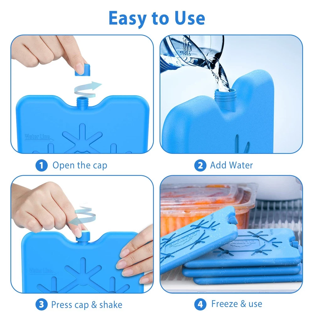 Ice Packs for Lunch Box 4 -Pack Reusable Ultra-Thin Freezer Packs Long-Lasting Cool Packs for Coolers, Keep Food Fresh and Cold in Lunch Boxes and breastmilk Bags - 4 Pack (Blue) 【 Keep Food Fresh & Drinks Cold 】Perfect for daily use in lunch boxes, bento boxes, and coolers. Ideal for work, school, picnics, hikes, fishing, and more 【 Keep Breastmilk Fresh】Bring back fresh breast milk for your baby to grow better. No longer need to carry multiple backpacks 【 Save Space】4 slim ice packs (6.5” x 4.3” x 0.5”) will fit in just about any lunch box or coolers that you can think of and takes up less food or drink space 【 Reusable 】Not like ice, ice packs don't make a mess as they thaw and will stay frozen for longer. sandwiches and other food items don’t get ruined when ice packs start melting 【 Easy Clean 】Just add water and stir to turn into a gel, freeze ice packs the night before use. Just rinse them and pop them back in the freezer after use, ready for next time Shipping We offer FREE shipping on all orders! We ship within Three business days of payment, usually sooner. We use a selection of shipping services such as UPS, FedEx, USPS etc. We only ship to the lower 48 states, no APO/FPO addresses or PO Boxes allowed. Local pickups and combined shipping options are not provided at this time. Return You can return a product for up to 30 days from the date you purchased it. Any product you return must be in the same condition you received it and in the original packaging. Please keep the receipt. Payment We accept payment by any of the following methods: PayPal Please pay as soon as possible after winning an auction, as that will allow us to post your item to you sooner! Feedback Customer satisfaction is very important to us. If you have any problem with your order, please contact us and we will do our best to make you satisfied. Contact Us If you have any queries, please contact us via ebay. We usually respond within 24 hours on weekdays. Please visit our eBay store to check out other items for sale! Thank you for shopping at our store.