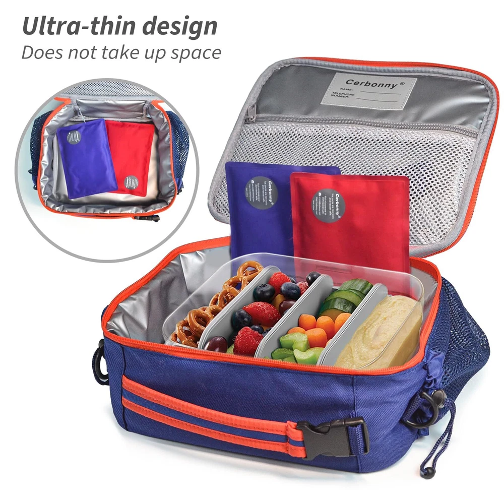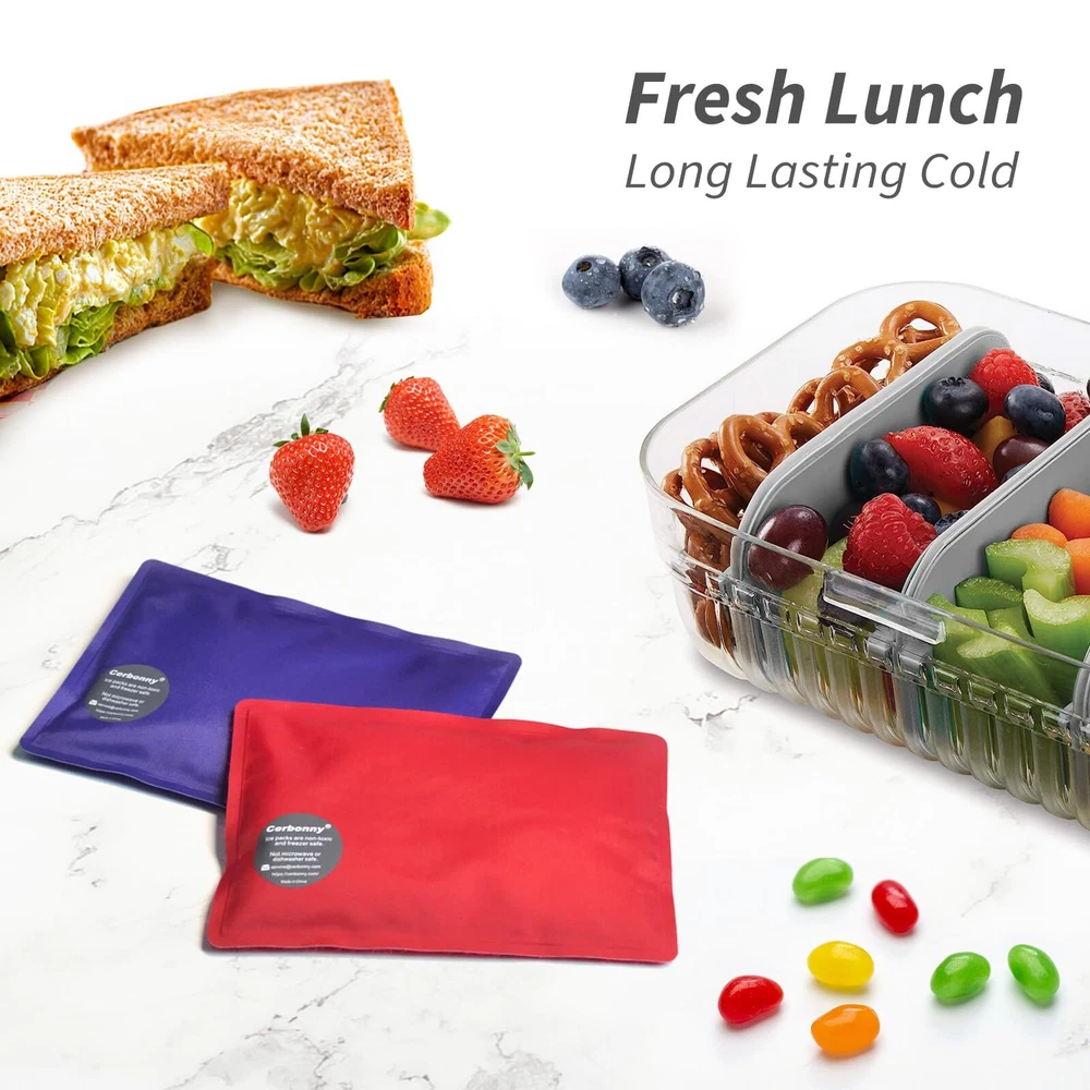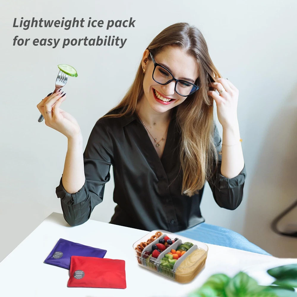 ❄Slim Lightweight-Set of 2 ice packs for lunch boxes. The ice packs for cooler measures 7 x 4.7 x 0.5 inches.They are the perfect size for lunch bags.Our cooler ice packs are compact, space-saving and easy to carry. ❄High Quality-The freezer packs are made with quality nylon fabric material.No matter how long you use them, the lunch box ice packs won't break or crack as easily as plastic.At the same time,our reusable ice packs for coolers are made with 100% BPA-Free Non-Toxic materials. You don't have to worry about safety when using ice pack for lunch box. ❄Lasting Cold-These gel ice packs will keep your food cold for hours.Put these ice pack for cooler in freezer for hours and then take them out to use, no complicated steps.They are very professional cooler ice packs reusable long lasting. ❄Multi-Purpose-Ice packs for lunch bags are perfect for lunch bags, lunch boxes, beach bags, picnic, work lunches, day trips, baby bags and breast milk storage.These ice packs for coolers can keep your food fresh even in high temperatures.