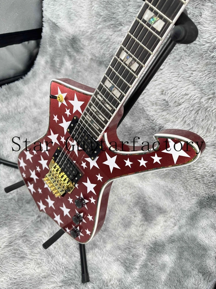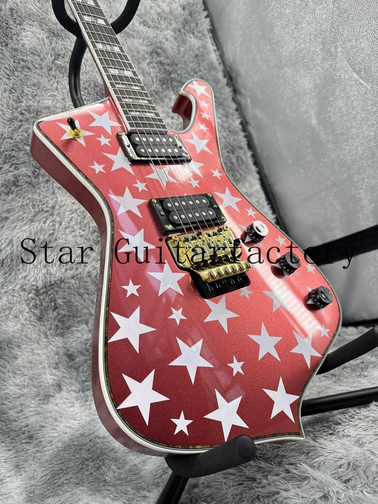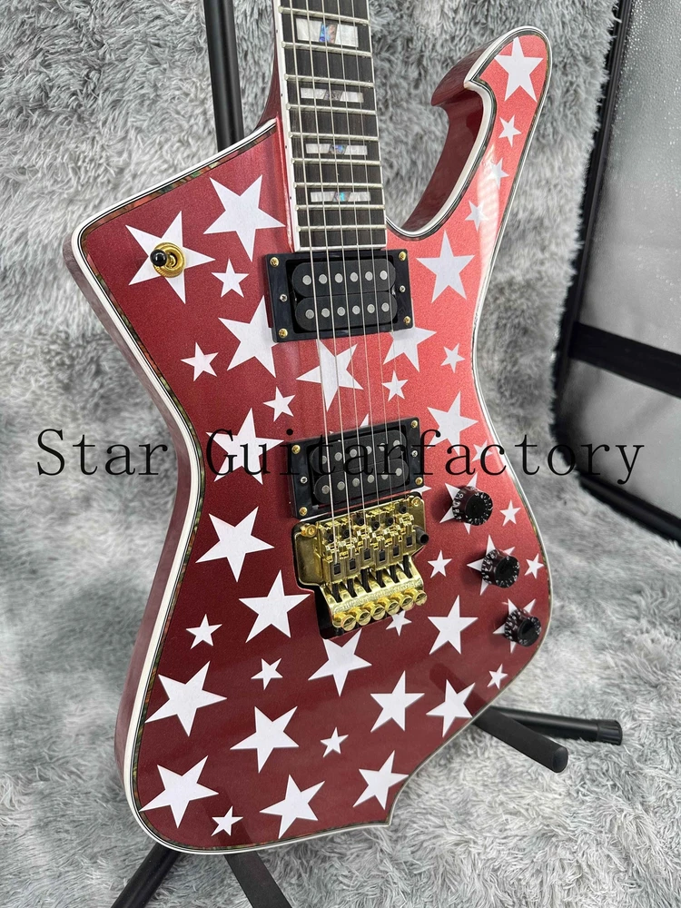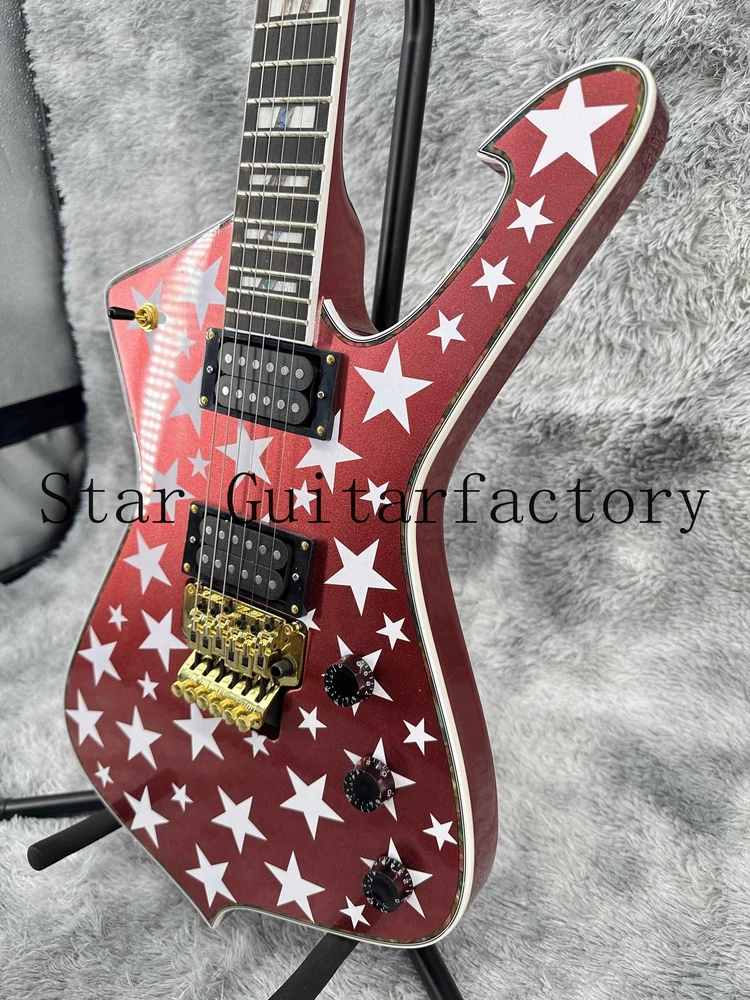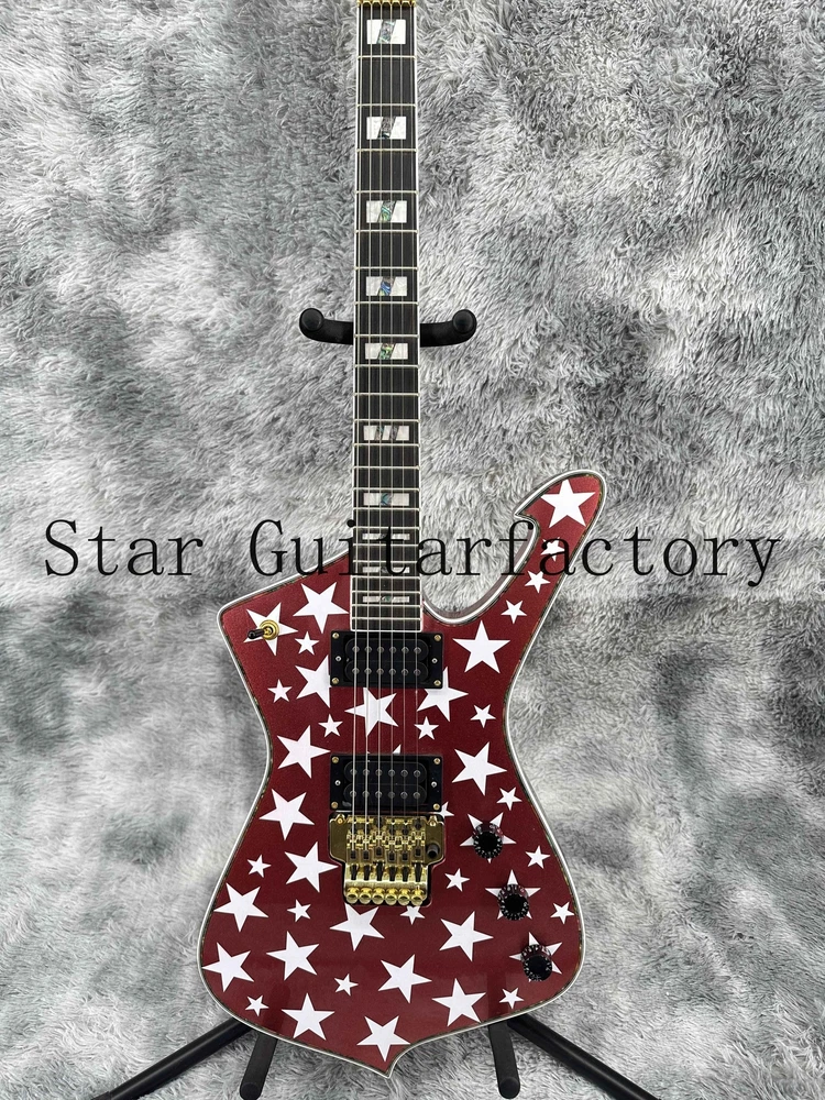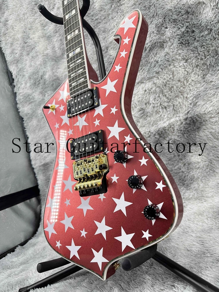 Iceman Red Electric Guitar Gold Part Solid Body Floyed Rose 6-strings Fast Ship